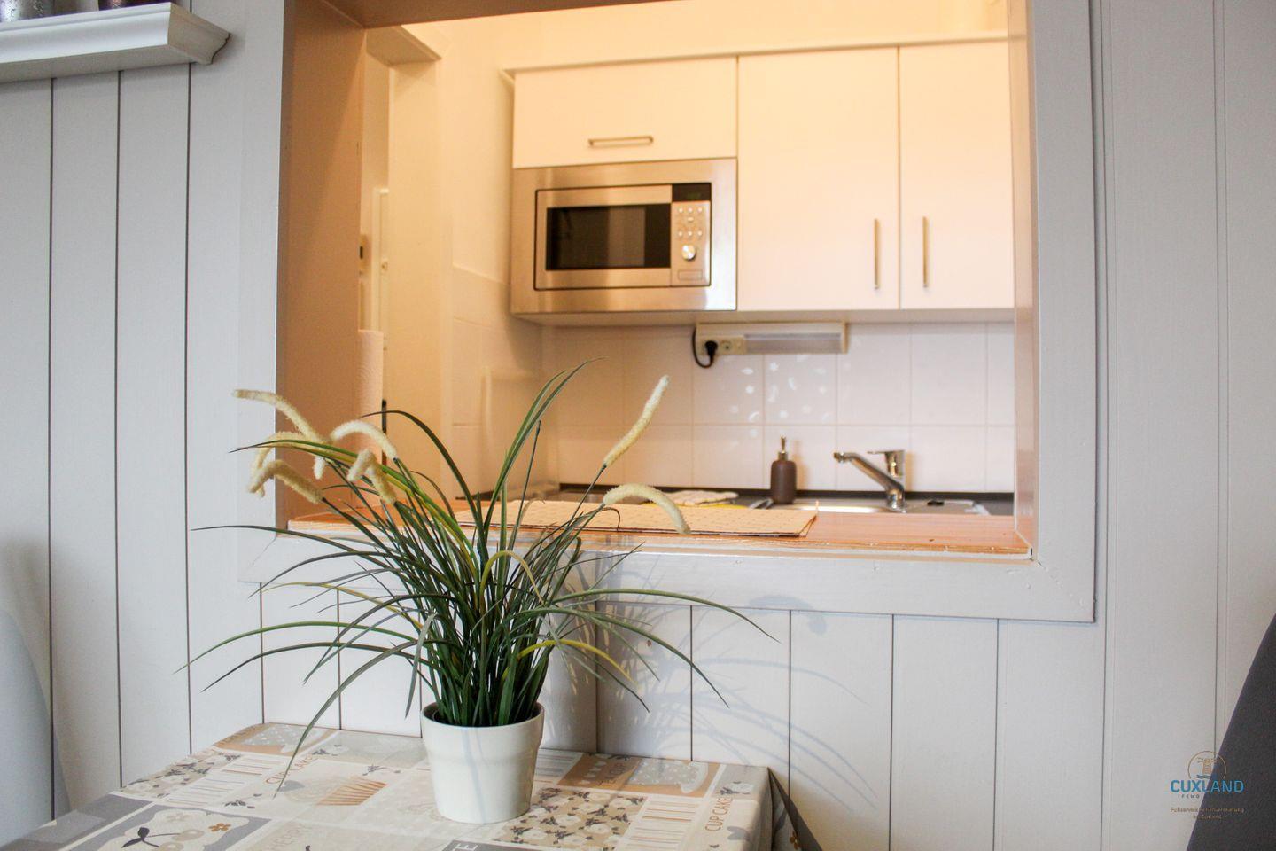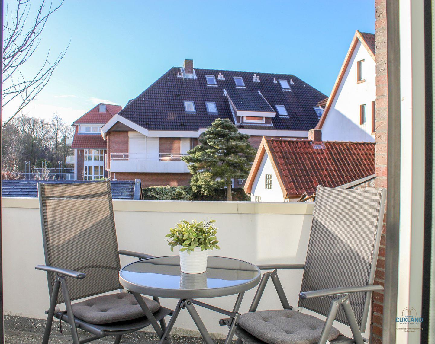 Die 42qm Ferienwohnung im 1. Stock von Duhnen bietet Platz für 4 Personen und liegt gegenüber dem Ahoi Erlebnisbad. Der helle Wohn- Essbereich und das gemütliche Schlafzimmer schaffen viel Raum für Entspannung. Das Highlight ist die gemeinschaftliche Dachterrasse mit einzigartiger Aussicht. Ein privater Balkon, kostenloses WLAN, ein Parkplatz, und ein Strandkorb am Duhner Sandstrand stehen zur Verfügung.