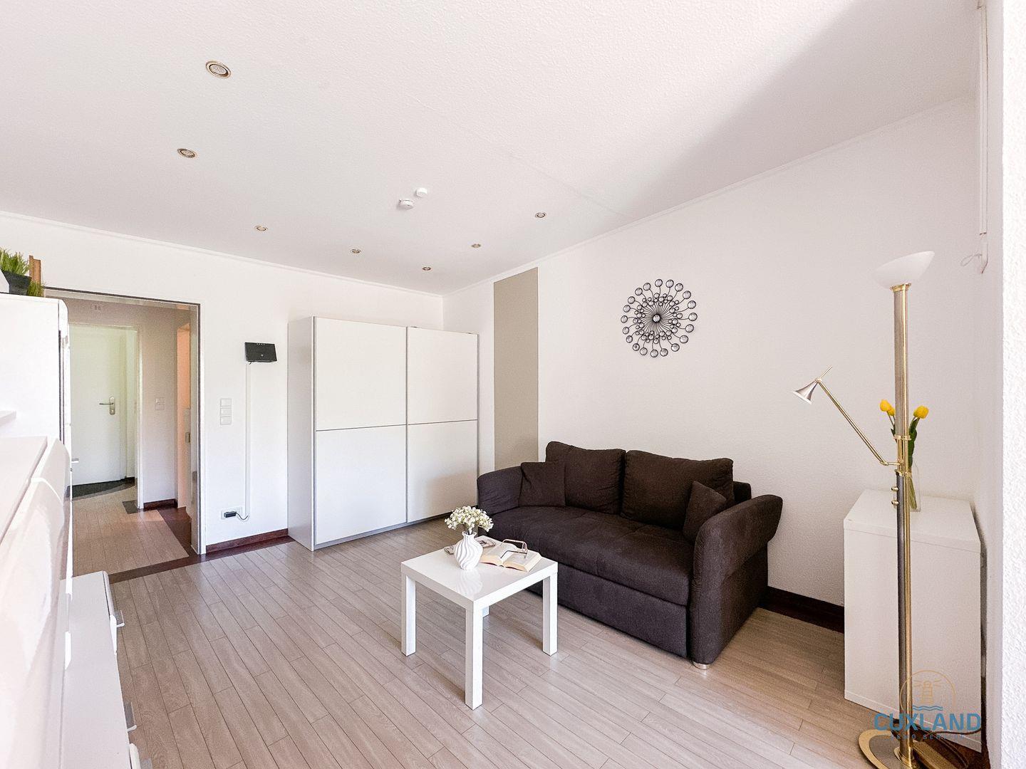 Platz für bis zu 3 Personen. Das helle und modern eingerichtete Wohnzimmer mit