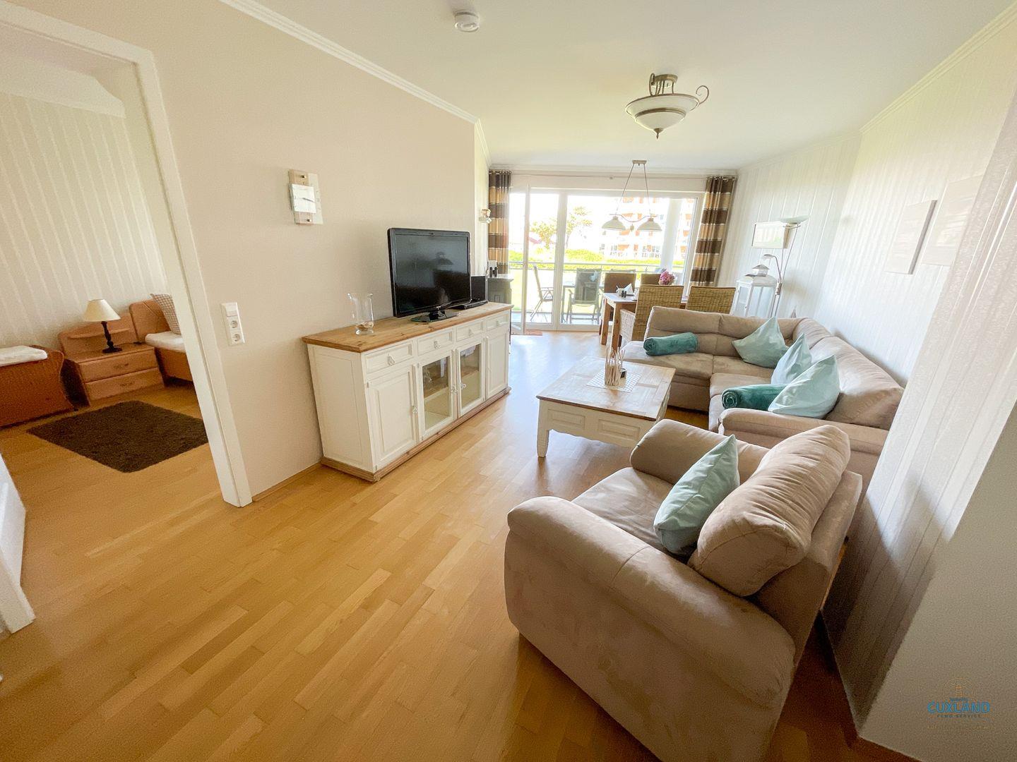 Dieses 70qm große Apartment im Haus Strandpalais Duhnen ist gemütlich eingerichtet und bietet aufgrund der