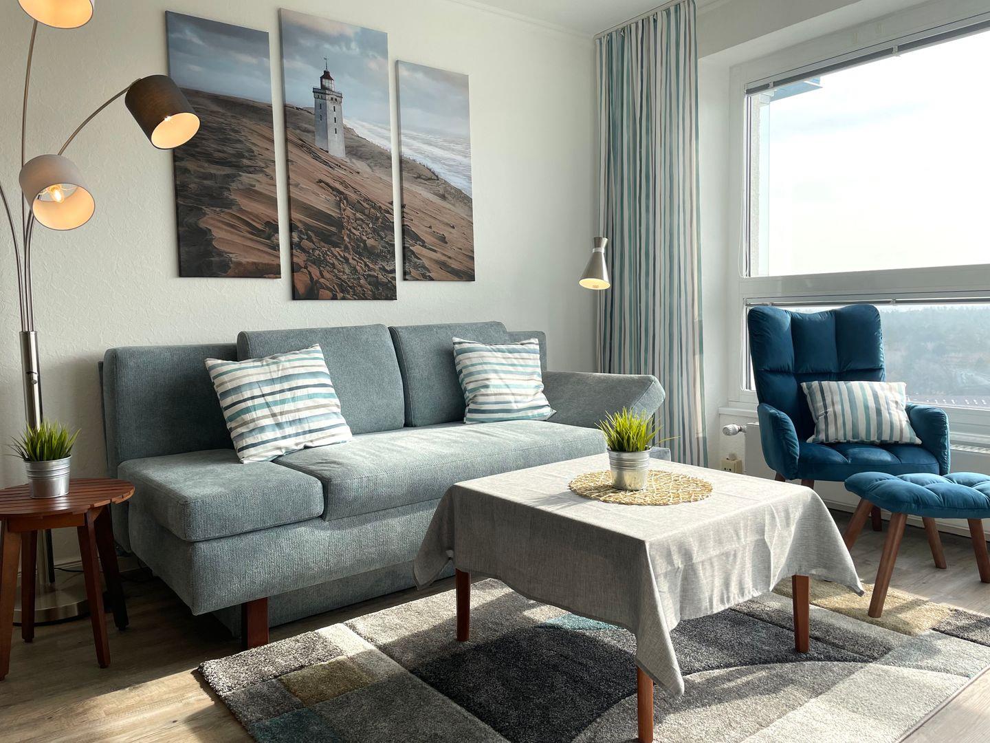 Herzlich Willkommen in unserer im Jahr 2024 frisch renovierten und liebevoll eingerichteten Ferienwohnung im 15. Stock der „Frischen Brise“!