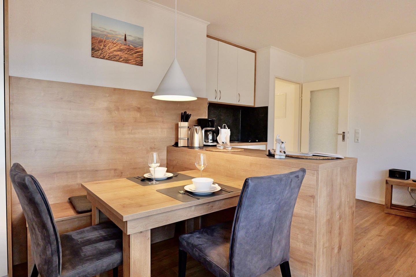 Schöne modern eingerichtete Ferienwohnung für zwei Personen - direkt am Strand von Duhnen! Das perfekte Domizil für Ihren Urlaub. In der 2.Etage, bequem mit Fahrstuhl zu erreichen, hauseigenes Schwimmbad und Sauna sowie kostenfreier Parkplatz.