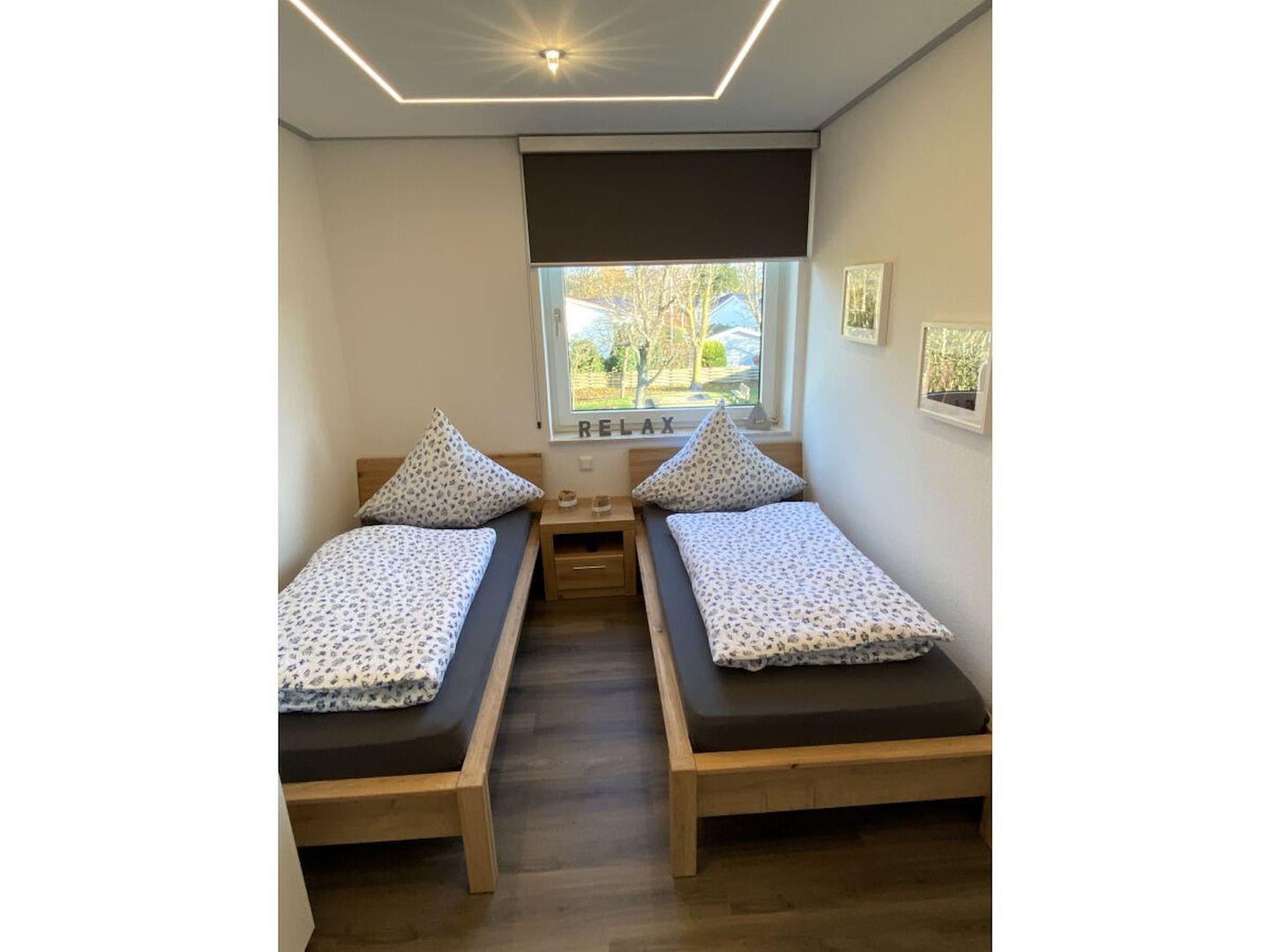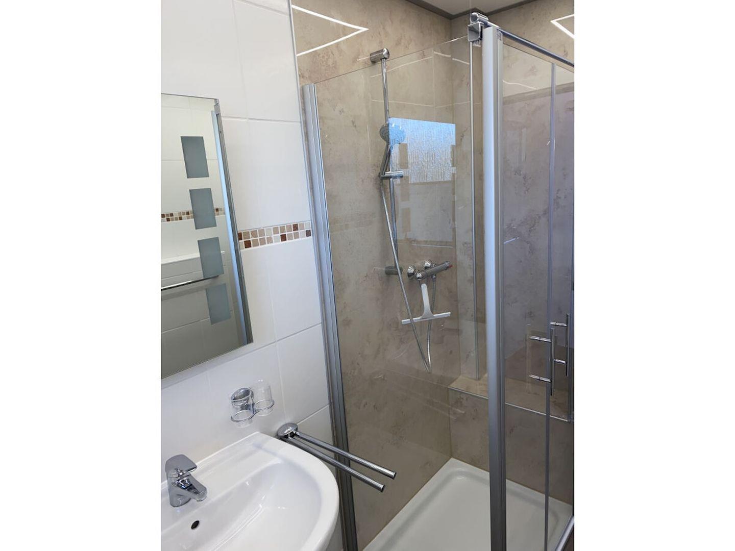 einem Schlafzimmer mit einem bequemen und großem Doppelbett, einem Schlafzimmer mit 2 Einzelbetten, 2 Duschbäder und einem zusätzlichen Gäste-WC.