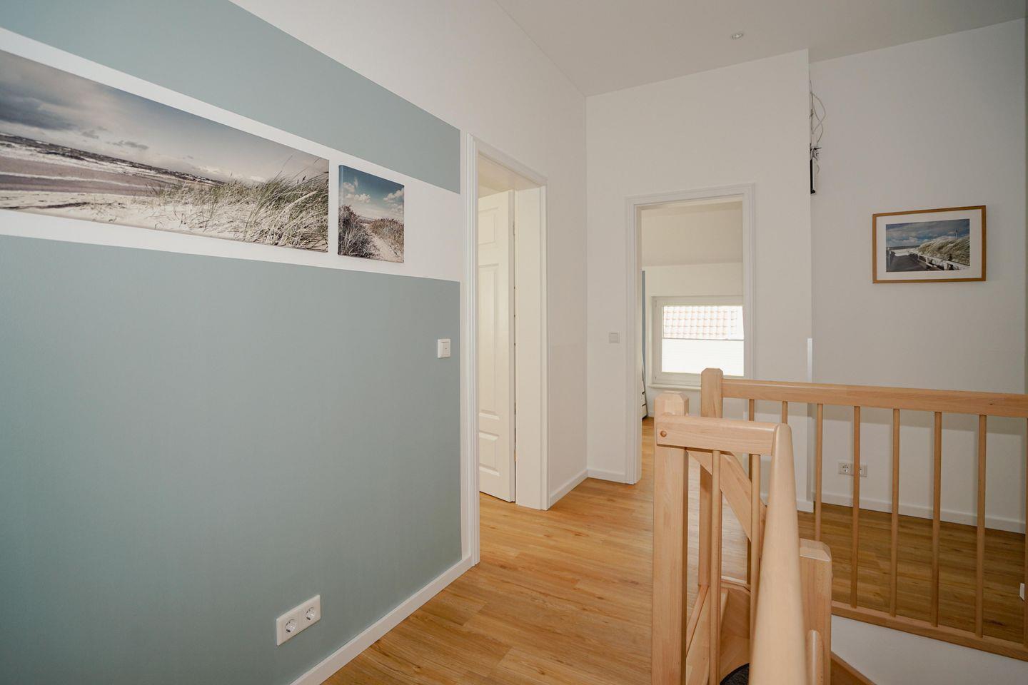 In der oberen Etage befinden sich die drei Schlafzimmer, sowie ein