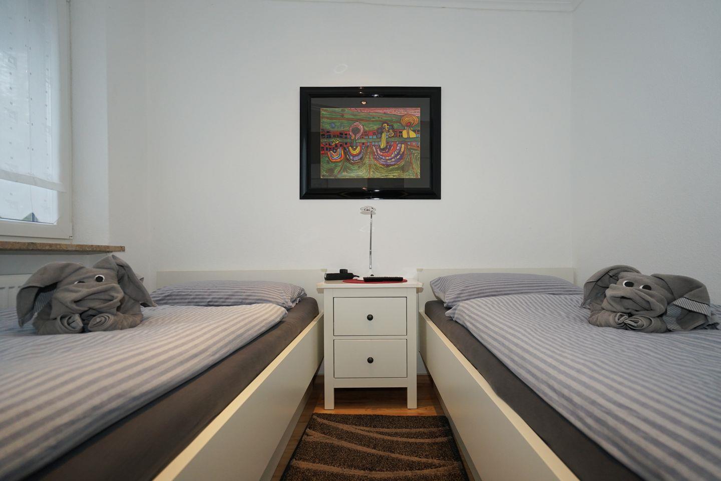 Im Innenbereich erwarten dich bequeme Einzelbetten im Schlafzimmer, alternativ steht dir ein hochwertiges, großes Schlafsofa im Wohnzimmer zur Verfügung. Die kleine, gut ausgestattete Küche ermöglicht es dir, deine Mahlzeiten selbst zuzubereiten, und das Badezimmer mit Badewanne sorgt für zusätzliche Entspannung. WLAN steht dir kostenfrei zur Verfügung, und für dein Auto gibt es einen Stellplatz.