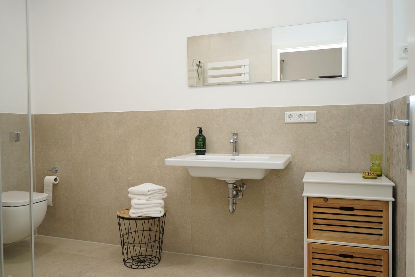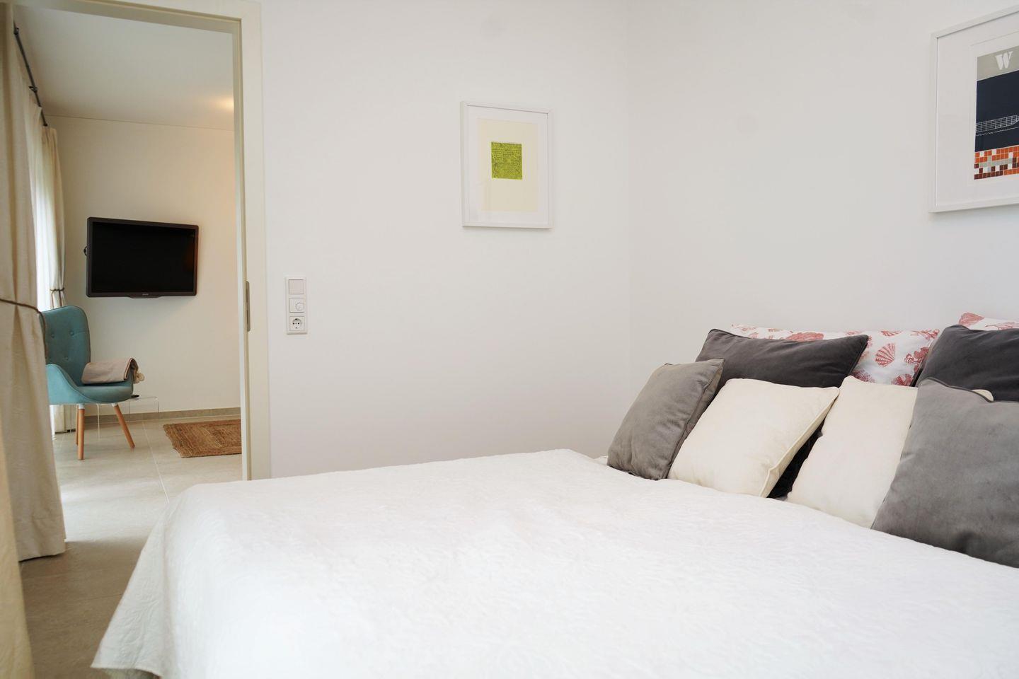 Im Schlafzimmer erwartet dich ein komfortables Boxspring-Doppelbett, in dem du jede Nacht entspannt schlafen wirst. Das moderne Badezimmer ist mit einer ebenerdigen Dusche und einem WC ausgestattet und verfügt außerdem über einen Haartrockner.