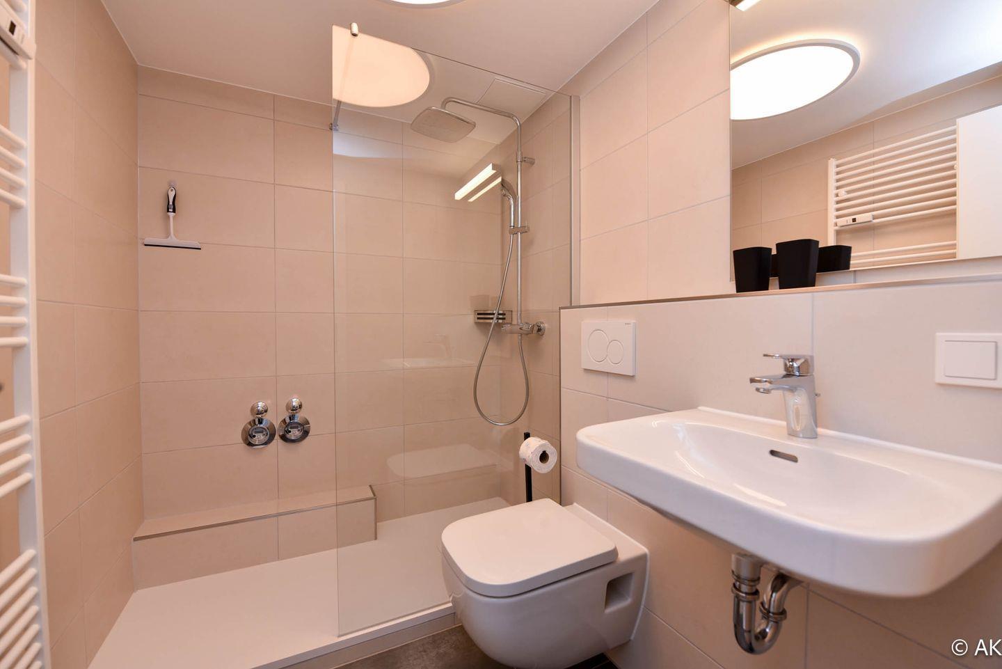 Das Apartment wurde Anfang 2025 von den neuen Eigentümern mit einer modernen Badsanierung aufgewertet. Das elegante Badezimmer verfügt nun über eine bodentiefe Dusche.