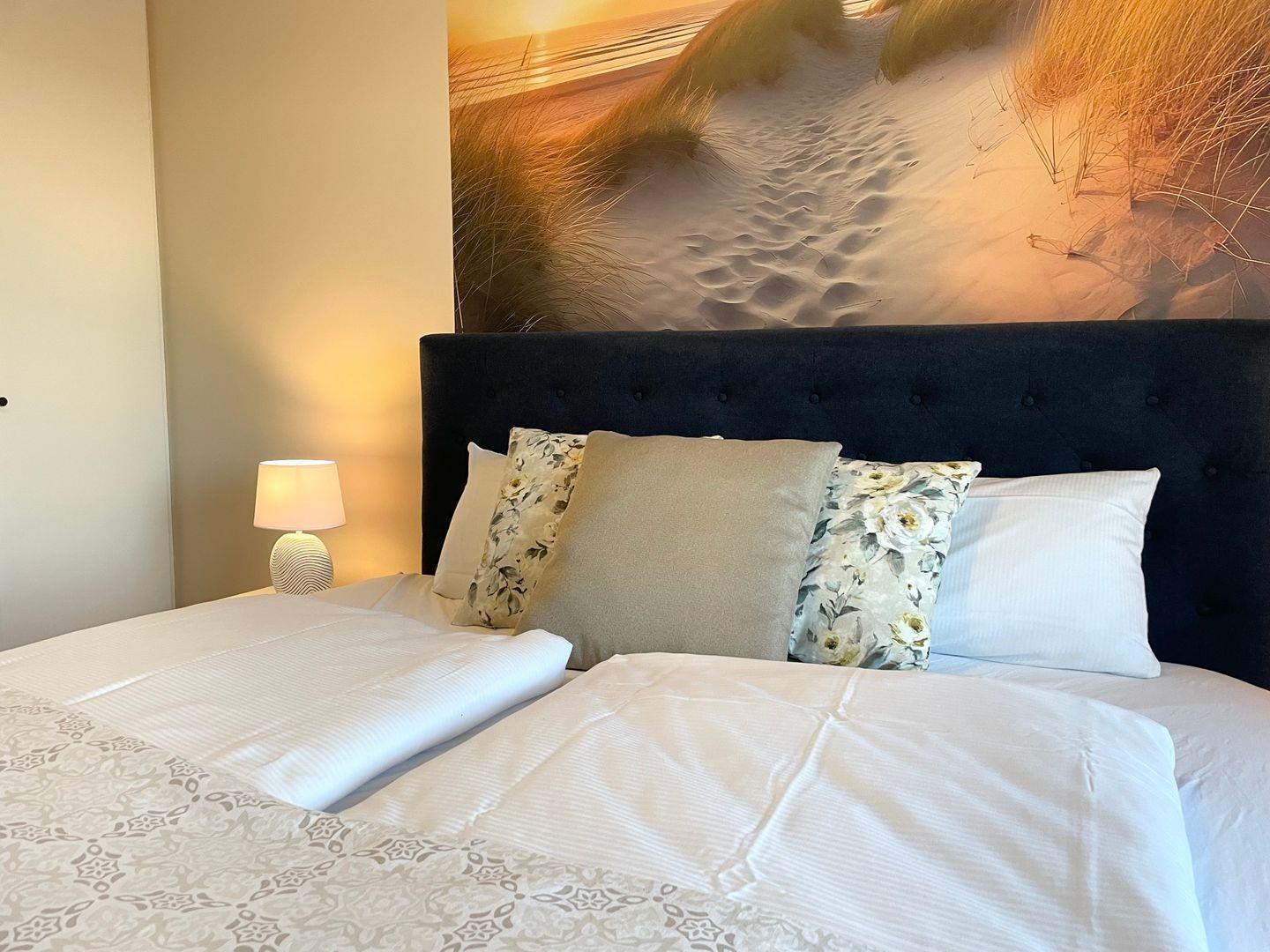 Betreten Sie die Ferienwohnung im 2. Stock, die durch einen praktischen Aufzug erreichbar ist. Die helle und freundliche Gestaltung der Räume sorgt sofort für eine gemütliche Urlaubsstimmung. In der Wohnung finden Sie zwei Schlafzimmer, die mit komfortablen Betten ausgestattet sind und für erholsame Nächte garantieren. Das Badezimmer mit Tageslicht verfügt über eine großzügige Dusche, damit Sie sich nach einem langen Strandtag erfrischen können.