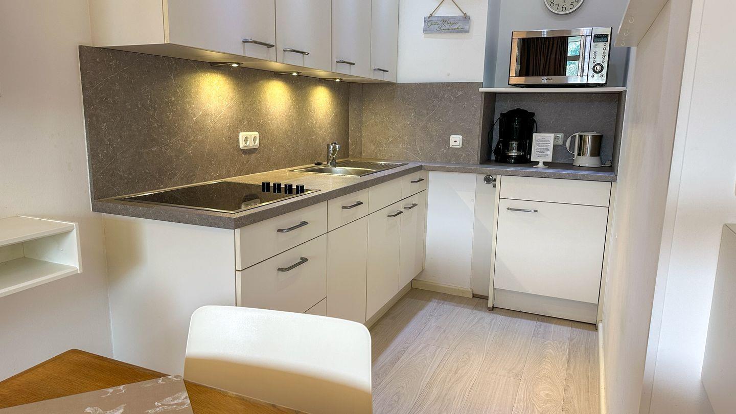 Mit einer Größe von 47 m² ist die Wohnung optimal gestaltet und verfügt über ein ansprechendes Wohnzimmer mit einer gemütlichen Sofaecke, einem Esstisch, sowie einem Flachbild-TV mit digitalem Anschluss. Die offene, voll ausgestattete Küche bietet Ihnen alles, was Sie für die Zubereitung Ihrer Lieblingsgerichte benötigen, einschließlich Herd, Kühlschrank, Spülmaschine, Mikrowelle und einer Kaffeemaschine. Hier können Sie sich nach einem erlebnisreichen Tag ein leckeres Frühstück zubereiten, um gestärkt in den Tag zu starten.