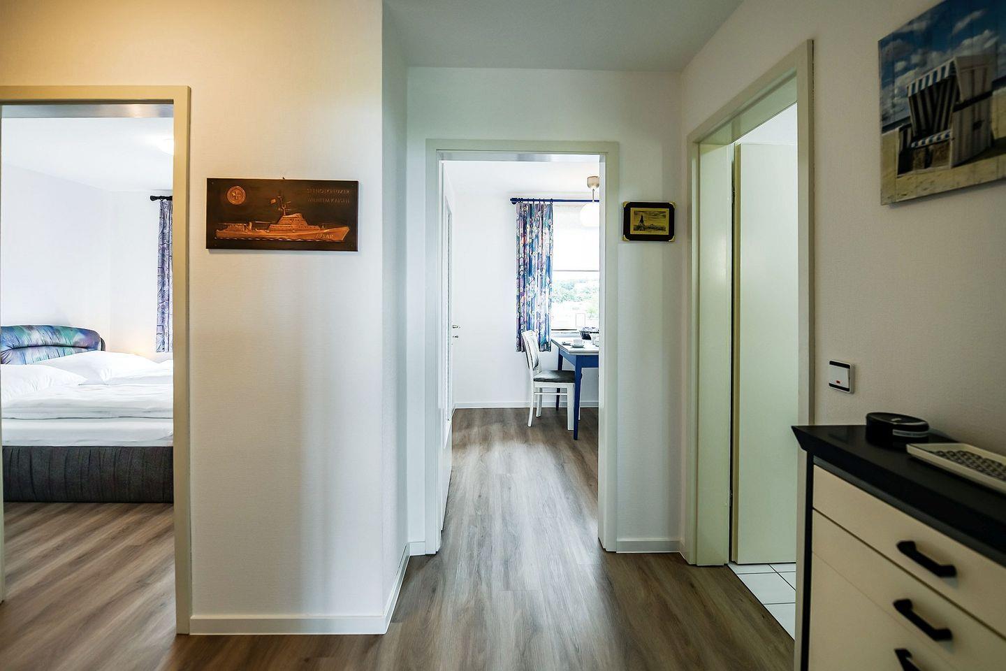 Die 55?m² große, gemütlich und modern eingerichtete Ferienwohnung für 2 Personen befindet sich in der 2. Etage (mit Aufzug) des Hauses Horizont II – direkt am Strand von Sahlenburg. Vom verglasten, überdachten Westbalkon genießen Sie einen freien Panoramablick auf die Insel Neuwerk, vorbeiziehende Schiffe und Wattwagen.