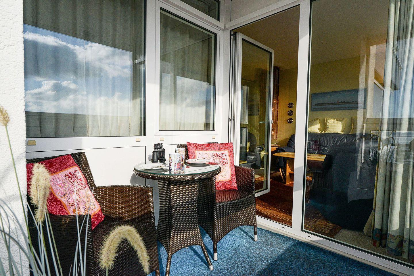 Ein echtes Highlight ist der überdachte, verglaste Südbalkon, der sich komplett öffnen lässt. So genießt du bei jedem Wetter den weiten Blick und die frische Nordseeluft – sonnig, windgeschützt und einfach herrlich.