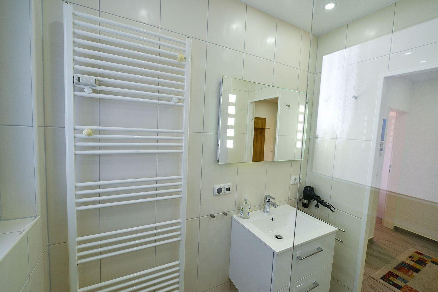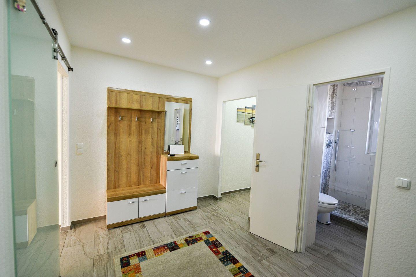 Die Ferienwohnung bietet eine offene, voll ausgestattete Küche, ein modernes Tageslichtbad mit Dusche sowie drei Flatscreen-TVs. Kostenloses WLAN ist ebenfalls vorhanden. Haustiere sind herzlich willkommen und dürfen mitreisen. Im Haus stehen Ihnen ein Schwimmbad, zwei Saunen (gegen Gebühr) sowie ein Ruheraum zur Verfügung.