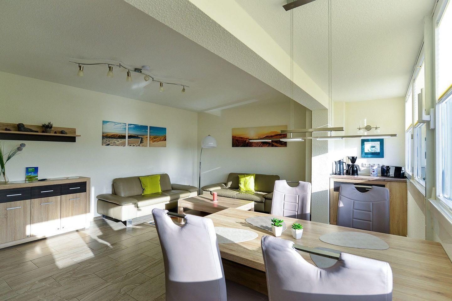 Die 60 m² große Ferienwohnung im 5. Obergeschoss des Strandhochhauses in Cuxhaven-Sahlenburg bietet Platz für bis zu 4 Personen.