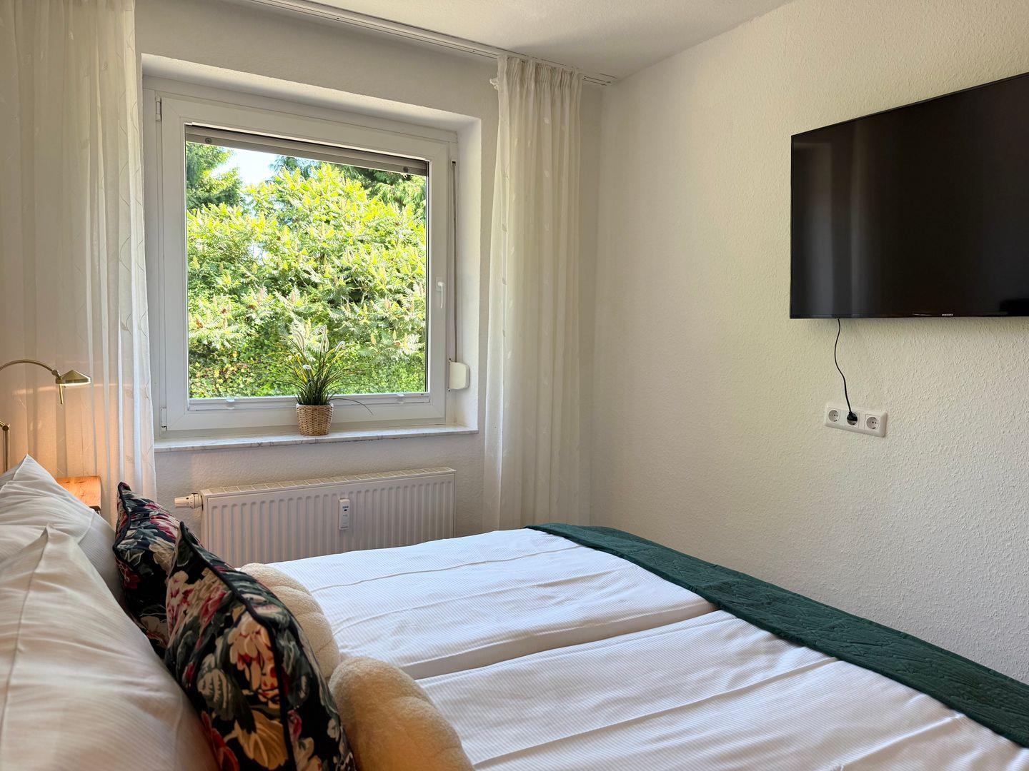 Die Ferienwohnung bietet Platz für bis zu 4 Personen und befindet sich im Hochparterre. Sie verfügt über ein Schlafzimmer, eine gut ausgestattete Küche, ein Badezimmer mit Dusche sowie eine Terrasse mit Garten. WLAN, TV, Waschmaschine, Parkplatz und zahlreiche Freizeitmöglichkeiten in der Nähe machen den Aufenthalt komfortabel und vielseitig. Haustiere sind willkommen.