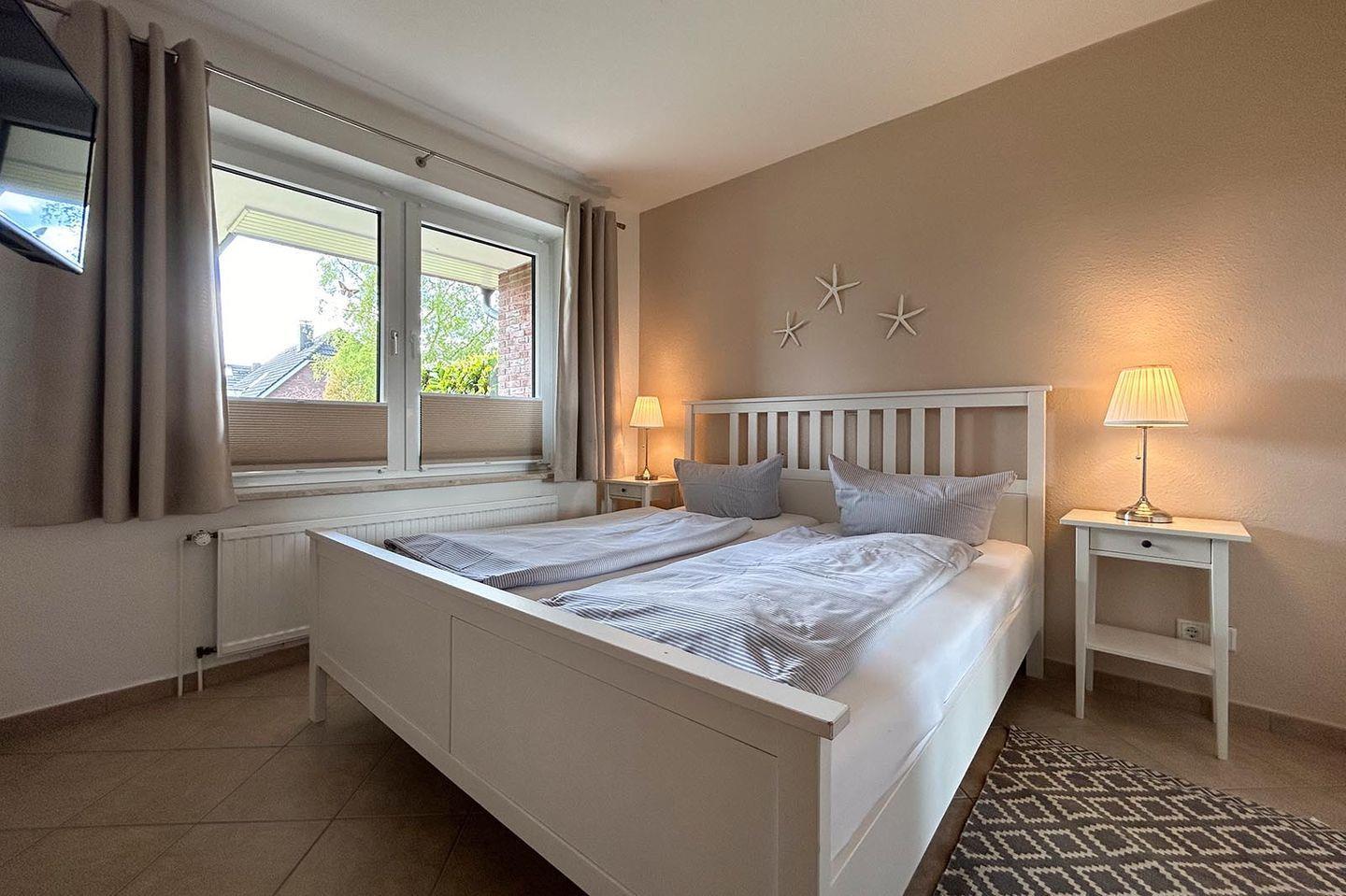 Die Landhaus Hubertus Ferienwohnung 9 (LH09) in Cuxhaven bietet auf 68 m² Platz für bis zu vier Personen. Zur Ausstattung gehören zwei Schlafzimmer, eine geschlossene Küche mit modernen Geräten, ein Wohnzimmer, eine Terrasse mit Gartenblick, WLAN sowie ein Privatparkplatz. Einkaufsmöglichkeiten, Strand und Stadtzentrum sind bequem erreichbar.