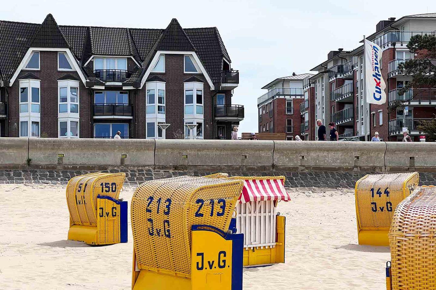 Ein Strandkorb am Strand ist von Mai bis Mitte Oktober im Preis inklusive.