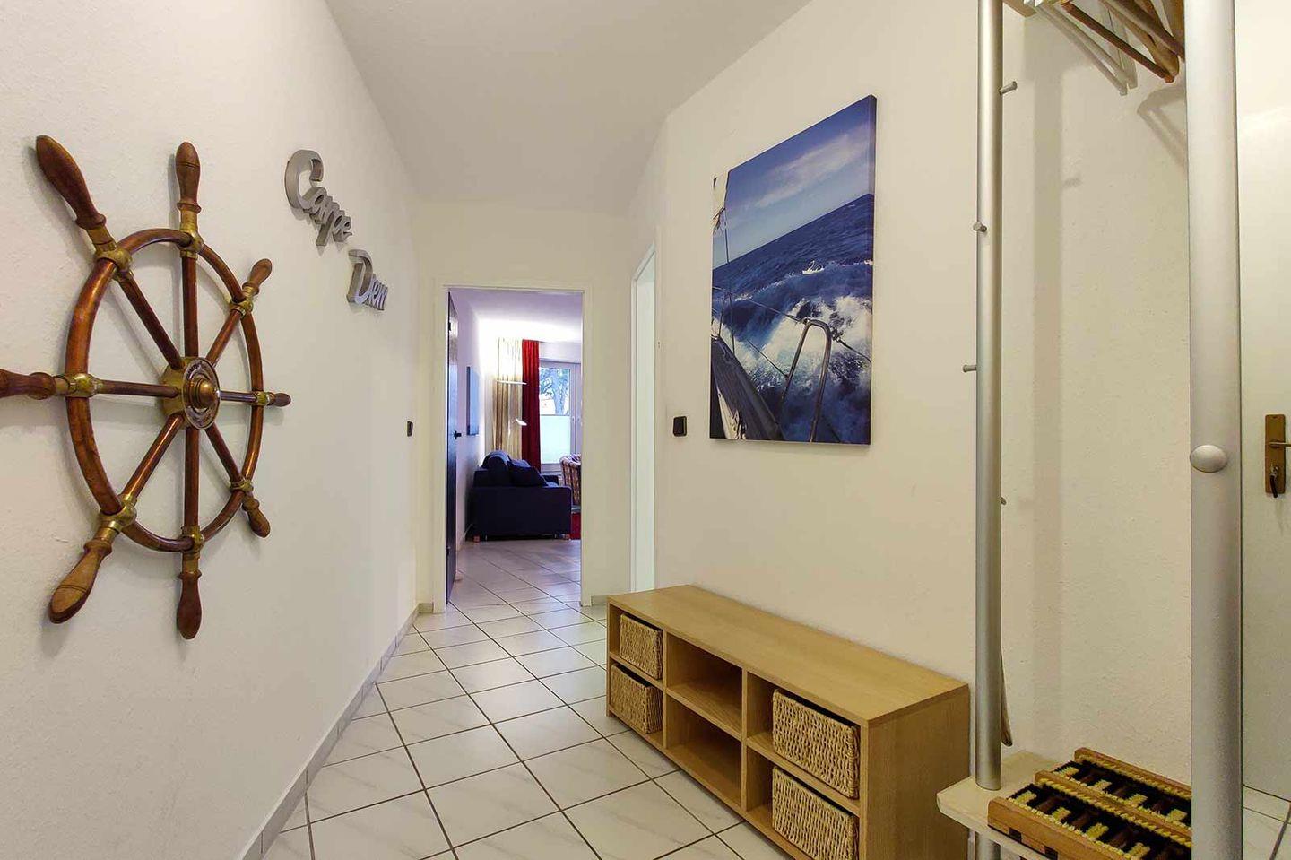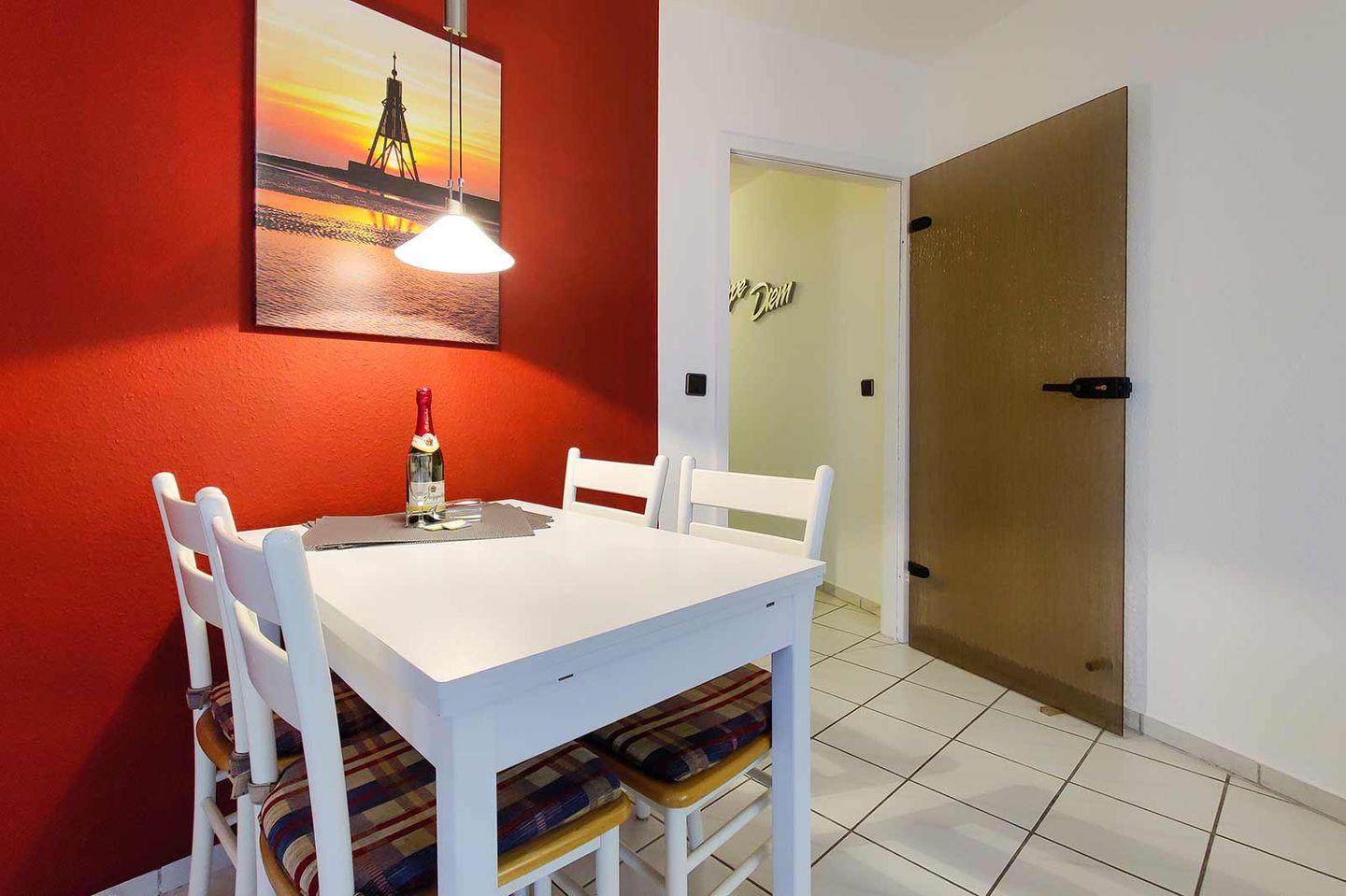Zur Wohnung gehört ein privater Pkw-Stellplatz, sodass die Anreise problemlos erfolgen kann. Für Radfahrer finden sich in der Umgebung attraktive Strecken entlang der Nordseeküste. Einkaufsmöglichkeiten erreichen Sie nach 550 Metern, das nächstgelegene Restaurant nach nur 210 Metern. Zudem ist ein Arzt in der Nähe verfügbar.