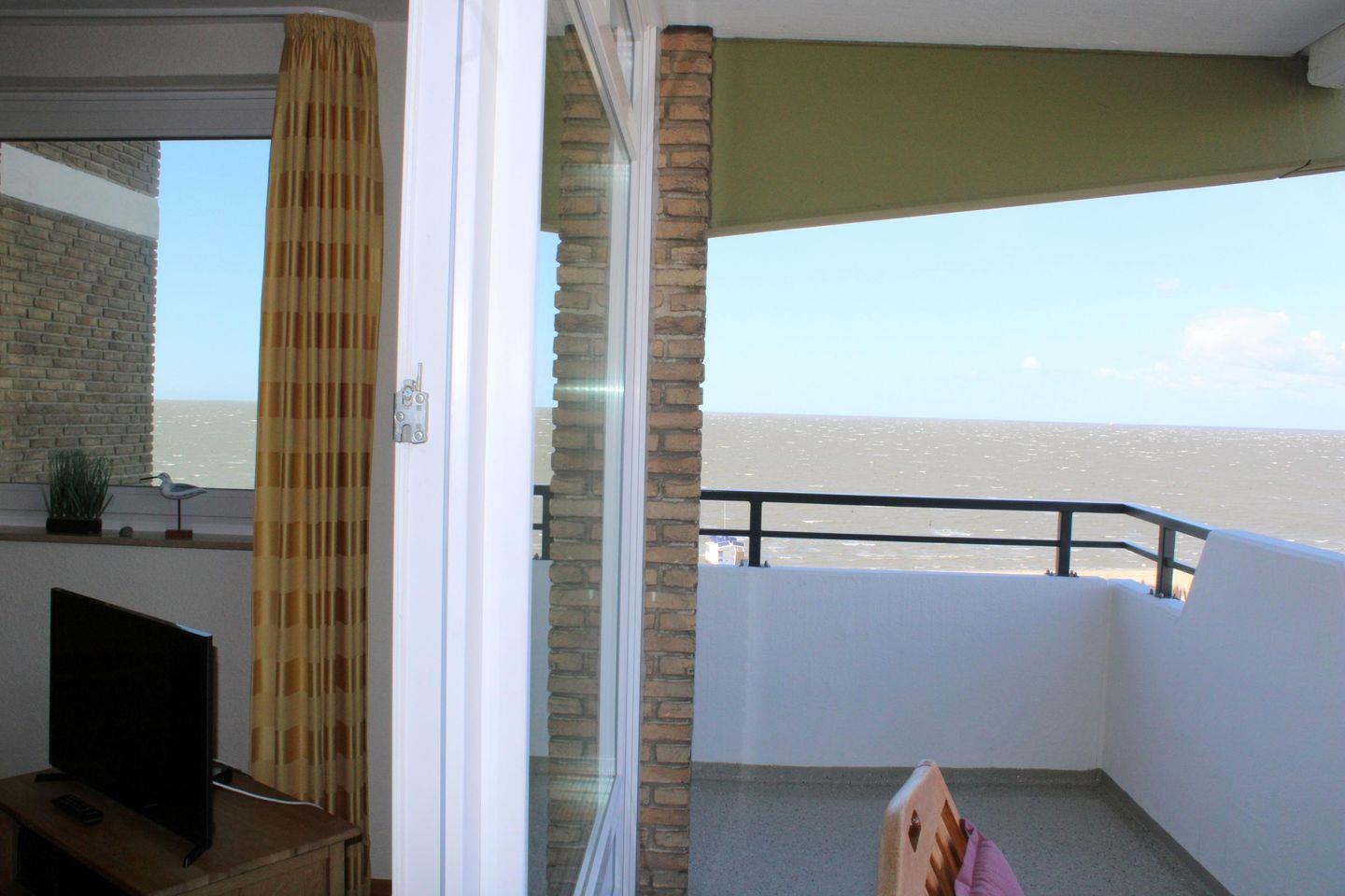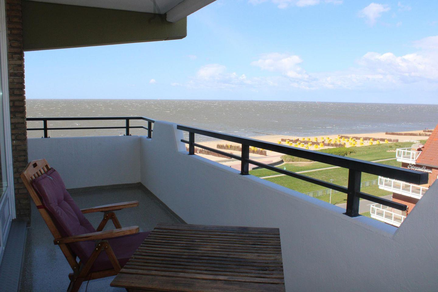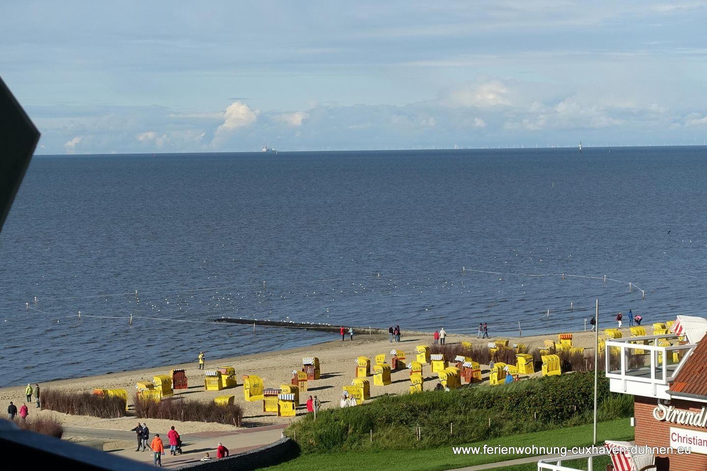 Die Ferienwohnung Nr.77 (48qm) liegt im 5.OG. mit Blick Richtung Osten zur Elbmündung und da sie eine Eckwohnung ist, kann man auch über den Deich in Richtung Norden sehen.