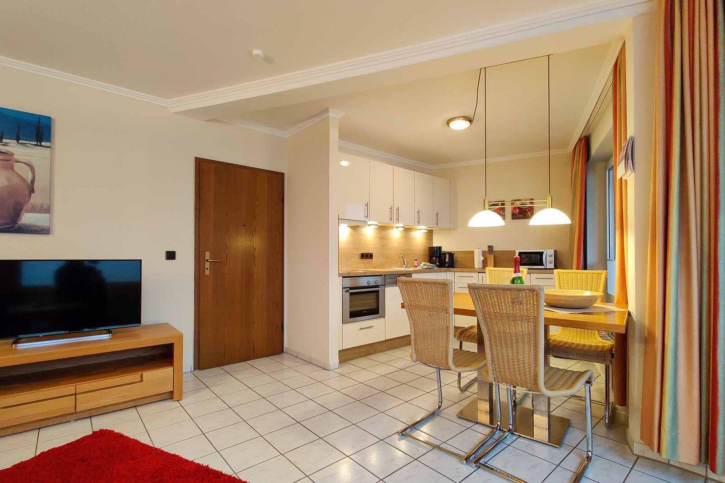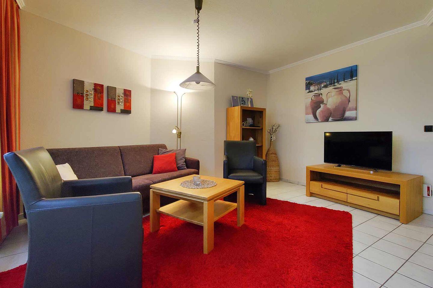 Residenz Meeresbrandung, Haus 1: Diese Ferienwohnung mit Meerblick für 2-4 Personen in der 1. Etage mit überdachtem Balkon ist geschmackvoll möbliert und gemütlich eingerichtet.