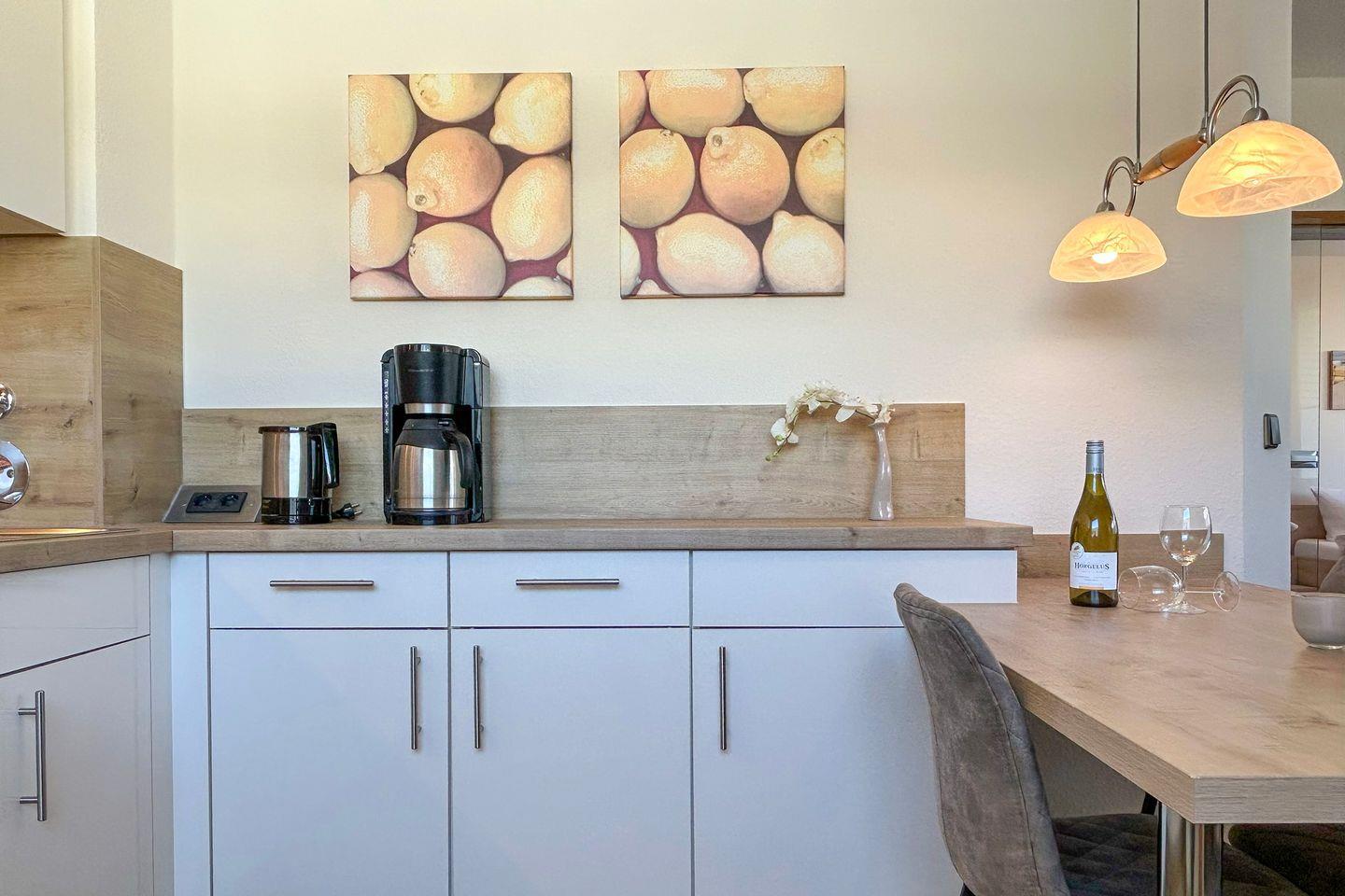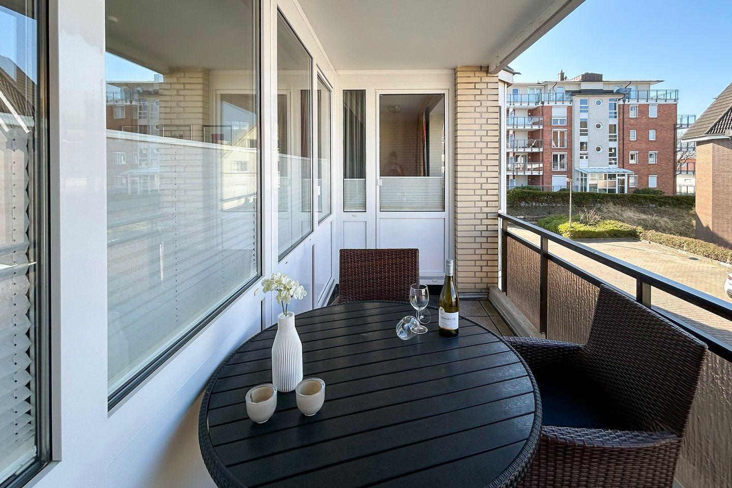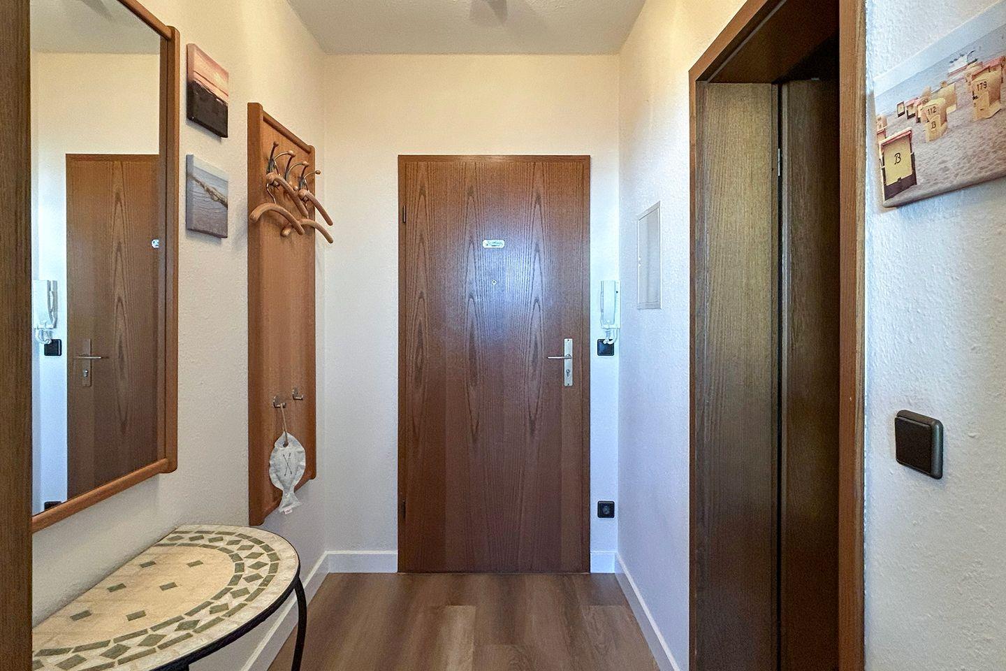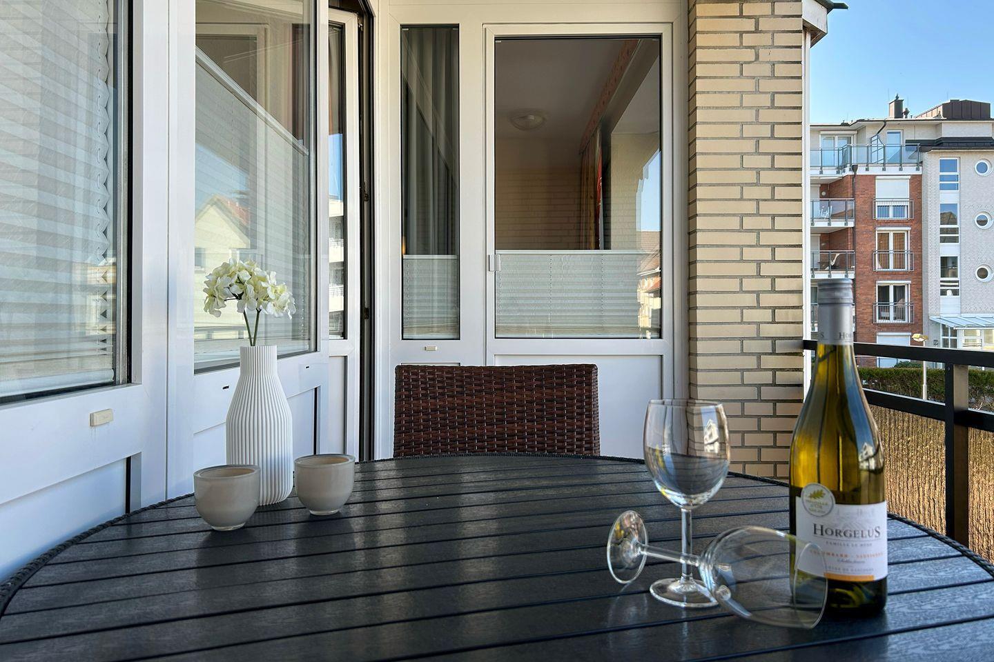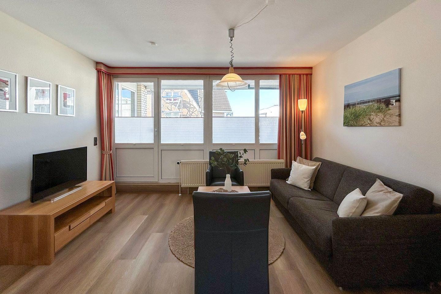 Residenz Meeresbrandung, Haus 2: Sie wohnen in einer geschmackvoll möblierten Ferienwohnung mit Meerblick in der 1. Etage im Haus 2 der Residenz Meeresbrandung. Genießen Sie den Teilblick aufs Meer und die tolle Strandnähe zentral in Duhnen.