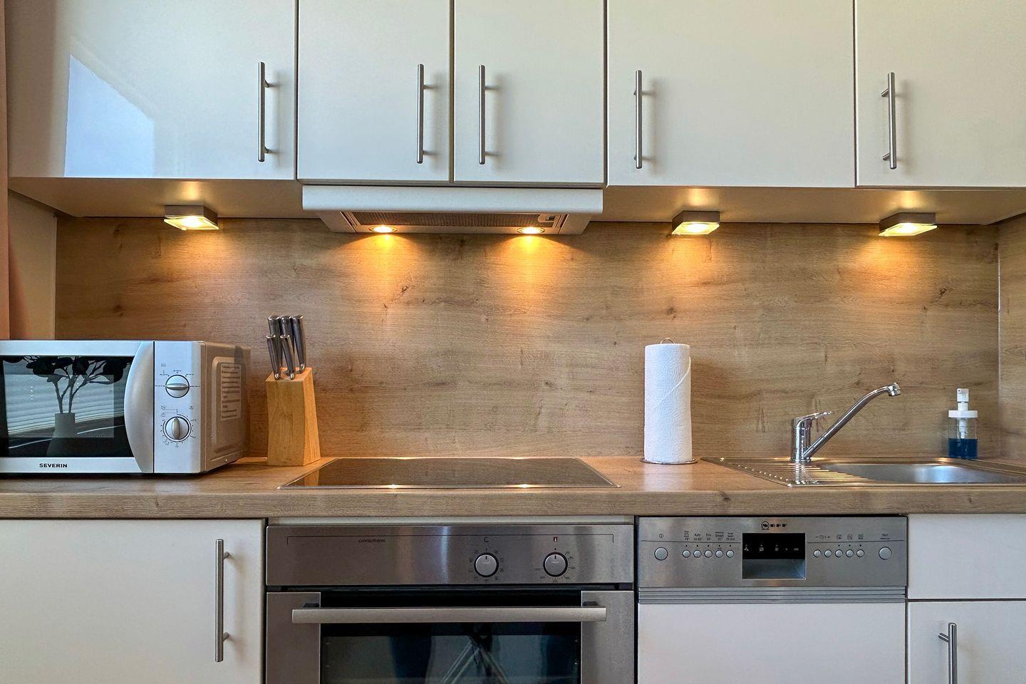 Die Residenz Meeresbrandung Ferienwohnung 48 bietet auf 51 m² Platz für bis zu vier Personen im 1. Stock. Sie genießen einen überdachten Balkon mit eingeschränktem Meerblick, einen eigenen Strandkorb am nahen Sandstrand (von Mai bis Mitte Oktober) sowie einen offenen Wohn-Essbereich mit moderner Küche. Sauna, Indoor-Pool, WLAN, TV, Privatparkplatz und gemeinschaftliche Waschmöglichkeiten sorgen für Komfort für Familien und Paare.