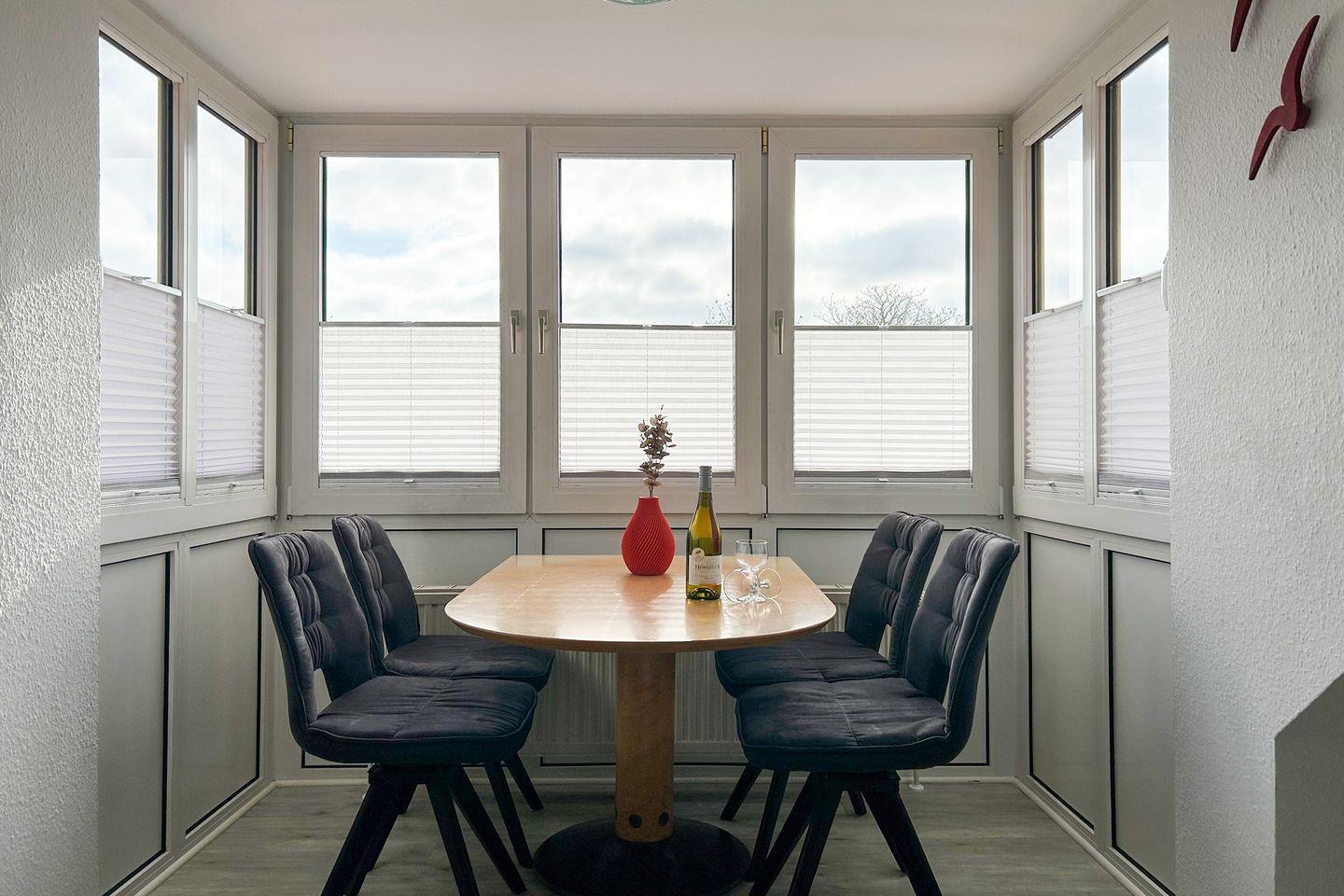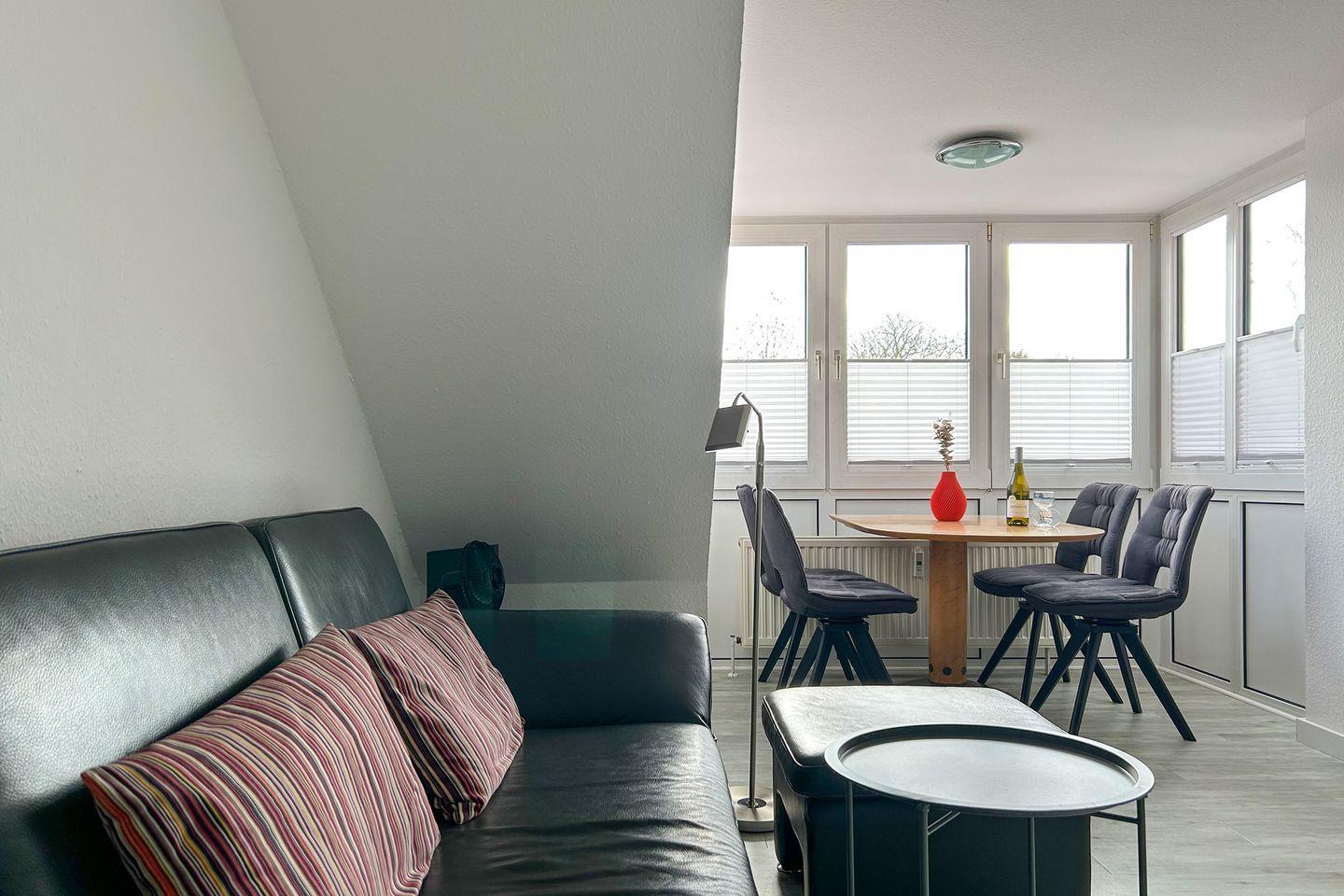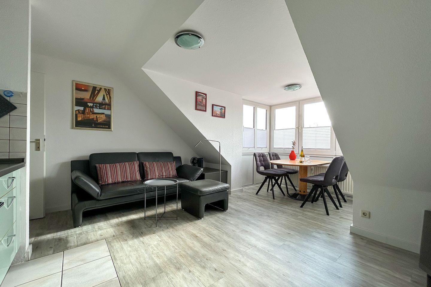 Eine weitere Besonderheit ist der Balkon, auf dem Sie bei schönem Wetter entspannen und die frische Nordseeluft genießen können. Die Wohnung bietet auch einen Privatparkplatz in der Tiefgarage, was das Ankommen und Abreisen besonders komfortabel gestaltet und es Ihnen ermöglicht, die Umgebung mühelos mit dem Auto zu erkunden.