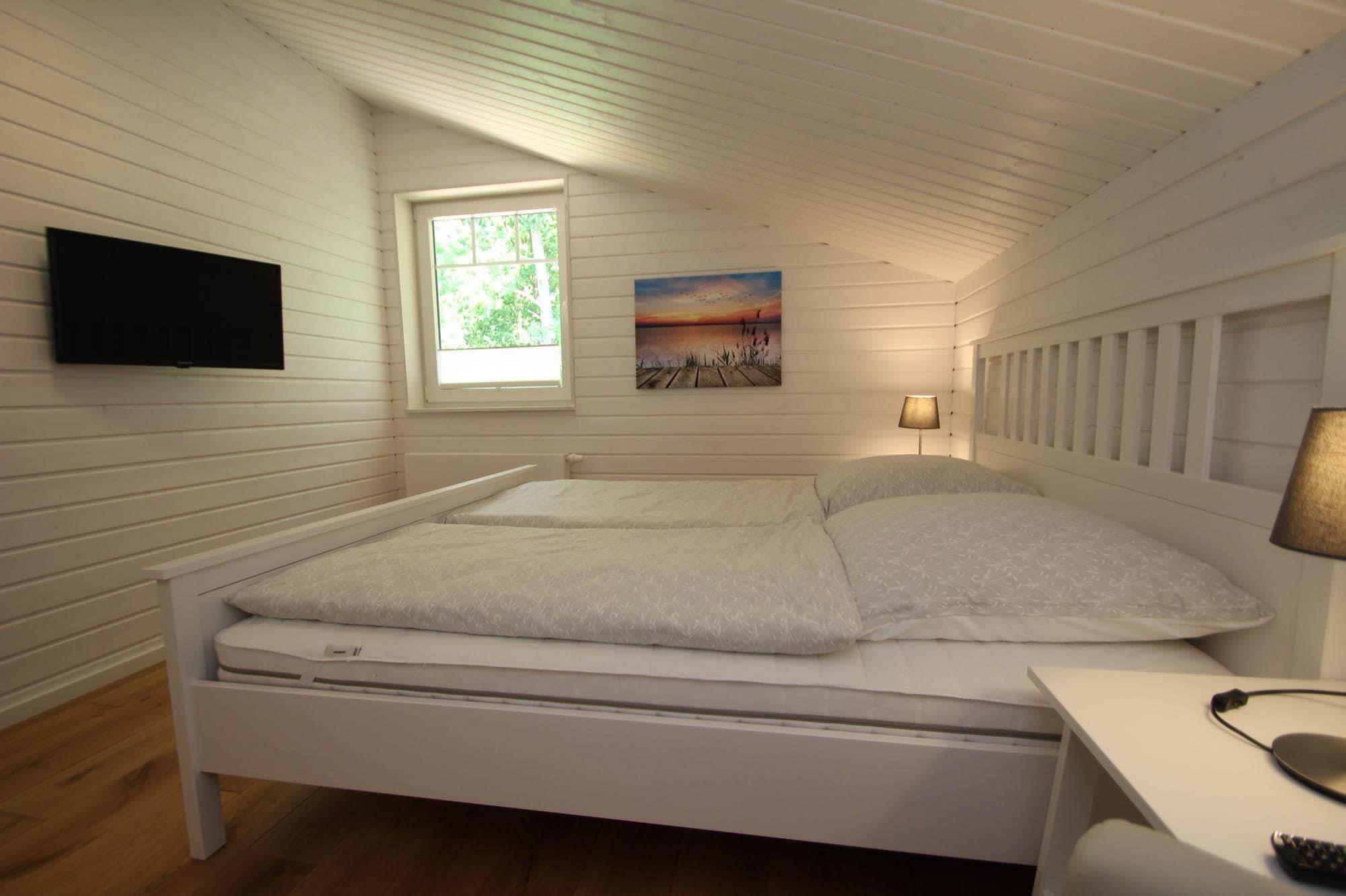 Moderne og højkvalitets sommerhus indrettet i skandinavisk design med robåd, sauna, WiFi og pejs, med en fantastisk beliggenhed direkte ved Dümmersøen. Højdepunktet er et overdækket og opvarmet spabad udenfor huset, som kan bruges hele året rundt. Det lille sommerhusområde ligger idyllisk i et naturreservat i bakkerne og søerne i West Mecklenburg, cirka 18 km fra delstatshovedstaden Schwerin. Den syv kilometer lange sø er et fantastisk område for lystfiskere, og på grund af sin gode vandkvalitet og sandstrand er den også en skøn badesø - selv for de mindste gæster. I delstatshovedstaden Schwerin kan du få en smagsprøve på byluften og opdage masser af interessante ting og ting, der er værd at se. Slottet med slotshaver, Schwerin Domkirke eller Schwerin Statsteater er absolut seværdige udflugtsmål. Højdepunkter inkluderet: Spabad (overdækket, opvarmet og brugbart hele året rundt) 1 robåd (01.05.-31.10.) WiFi Aktiviteter i nærheden: Dümmer Lake-regionen er ikke kun et vidunderligt rekreativt område, men er også det perfekte udgangspunkt for ture til Schwerin, Wismar eller Ludwigslust. Svømning på den lavvandede, børnevenlige strand og fra anløbsbroen ved Dümmersøen er muligt, samt sejlture og fisketure med robåden. Den bedste måde at udforske de smukke omgivelser på er dog ved at vandre, cykle eller stå på rulleskøjter. En næsten 15 km lang førsteklasses cykelsti fører direkte fra Dümmer til Wittenburg, hvor der også er en oplevelsespark med klatrehave, helårs skihal, quadbane og gokartbane. Delstatshovedstaden Schwerin med sit storslåede slotskompleks er bestemt et besøg værd. Dette feriehus er kun tilgængeligt til rekreative formål. Bestillinger foretaget på vegne af virksomheder vil blive annulleret, og eventuelle afbestillingsgebyrer vil blive opkrævet. Ungdoms- og mandegrupper er ikke tilladt. Linnedpakker er ikke inkluderet i lejeprisen. Disse kan eventuelt bestilles på forhånd via (EUR 25 pr. person/skift).