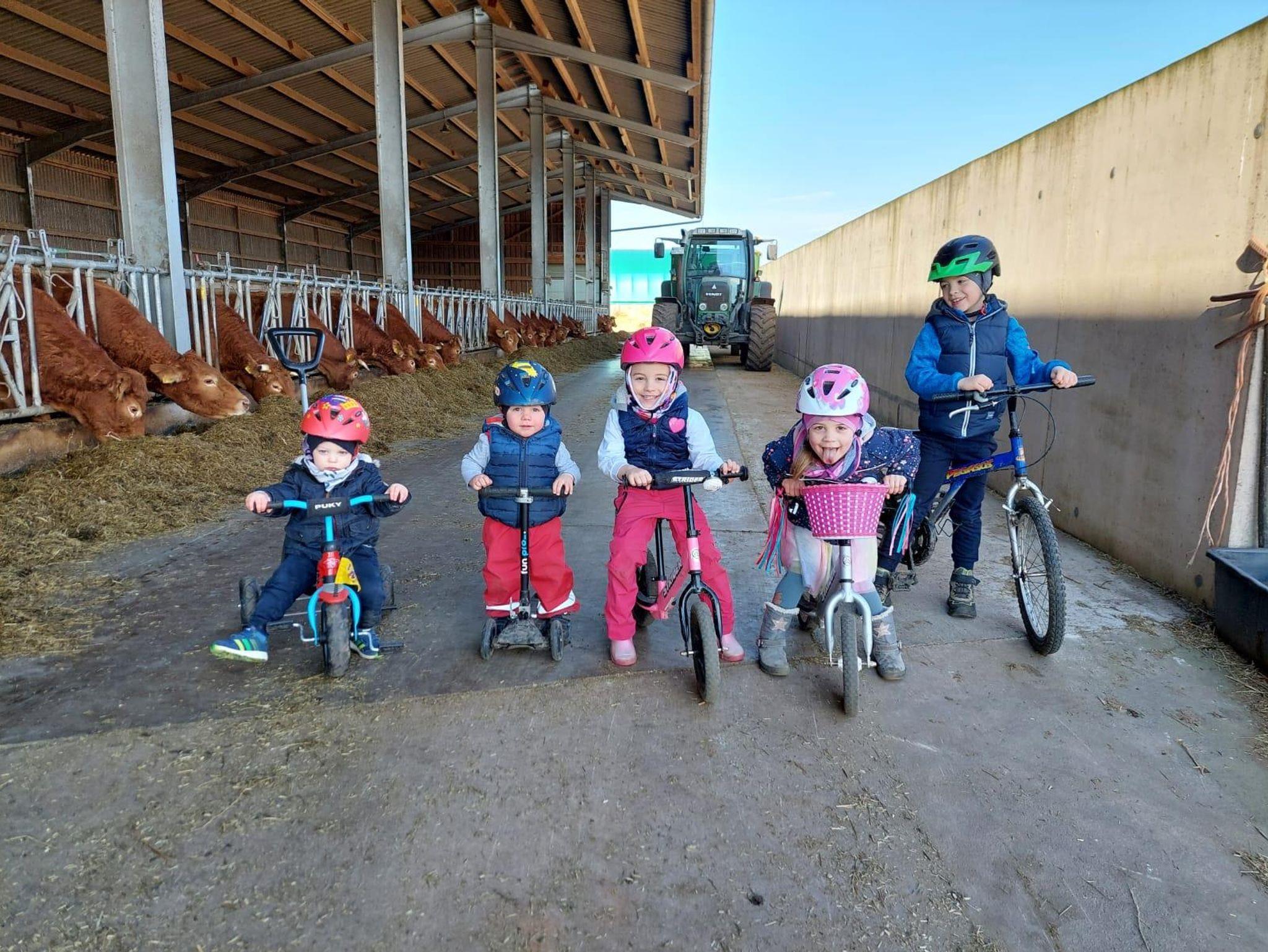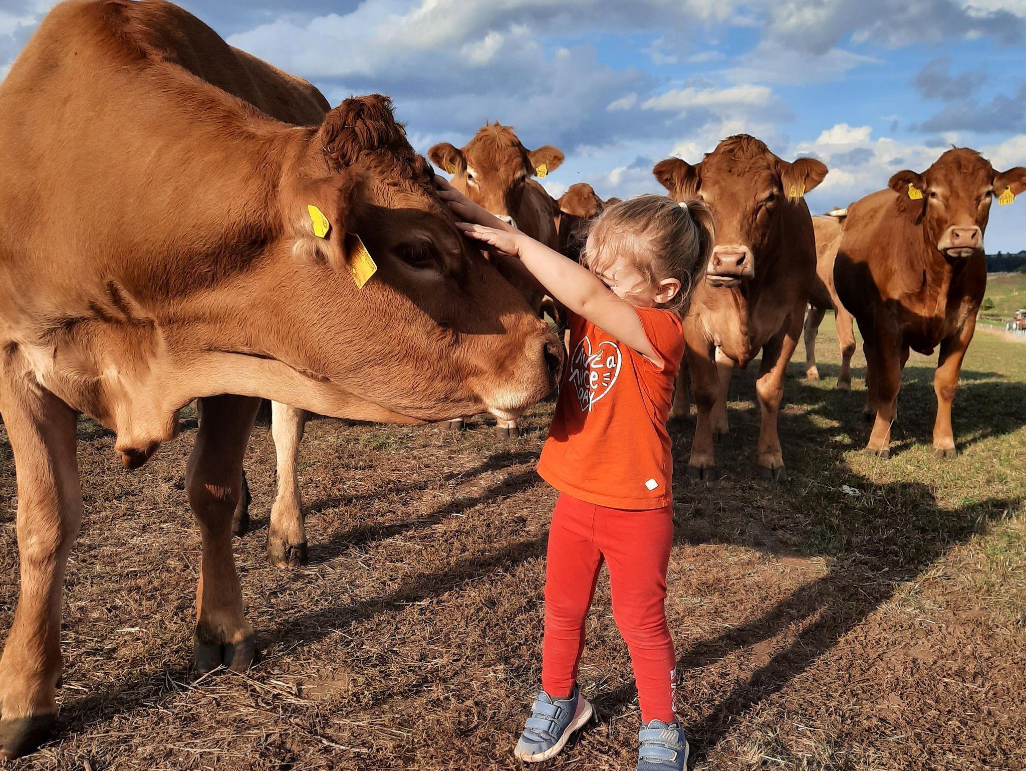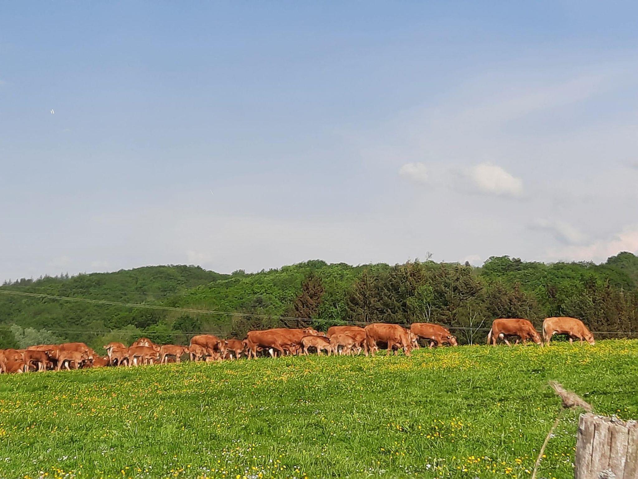 Auf unserem landwirtschaftlichen Familienbetrieb leben in einer großen Herde zwei Limousinbullen und etwa 80 Mutterkühe mit ihren Kälbchen. Erleben Sie das Wohlfühlprogramm auf dem Hof: Streicheln Sie unsere Pferde oder genießen Sie den Spielplatz mit einer Ritterburg, der kleine Abenteurer begeistern wird.