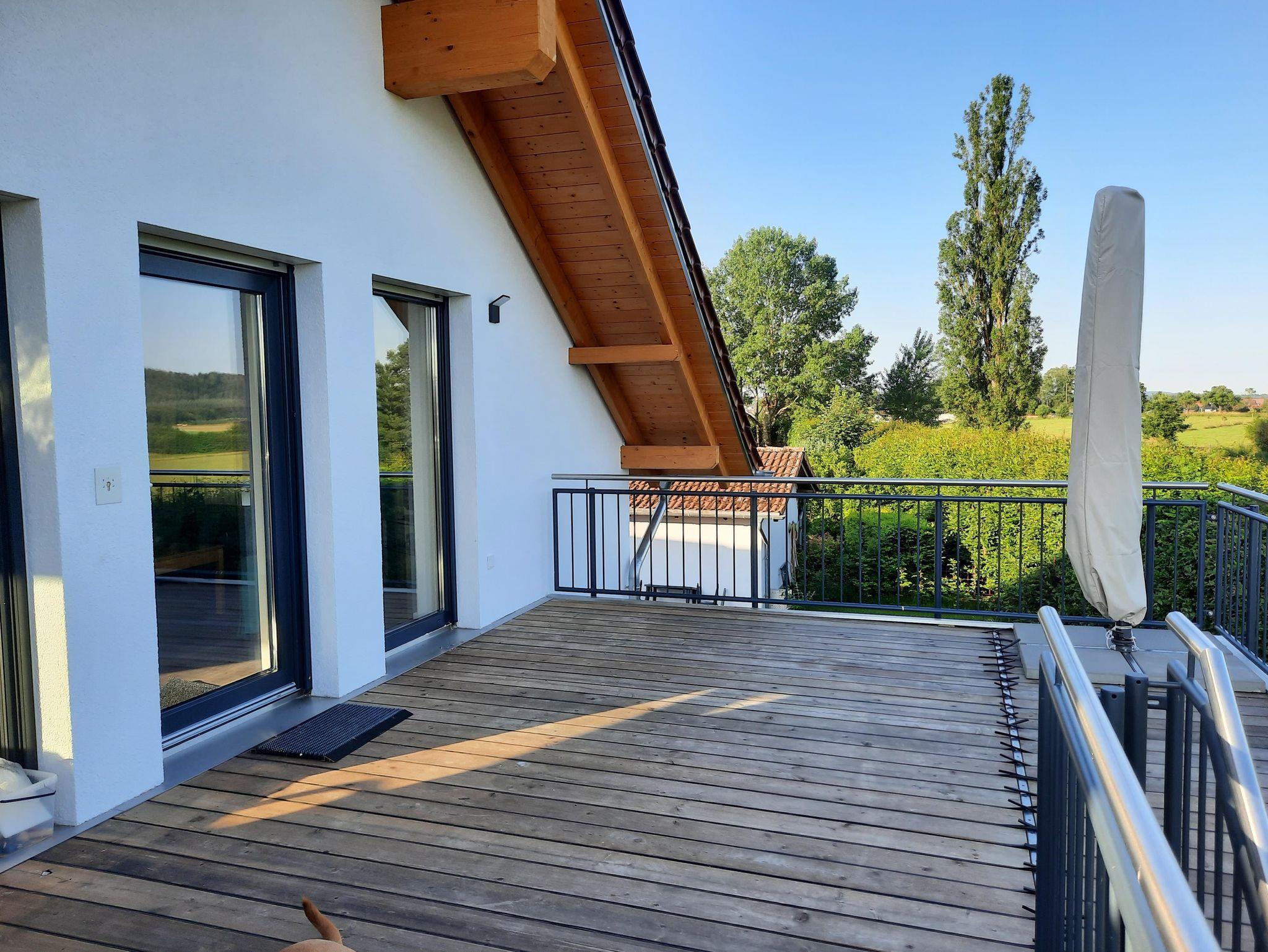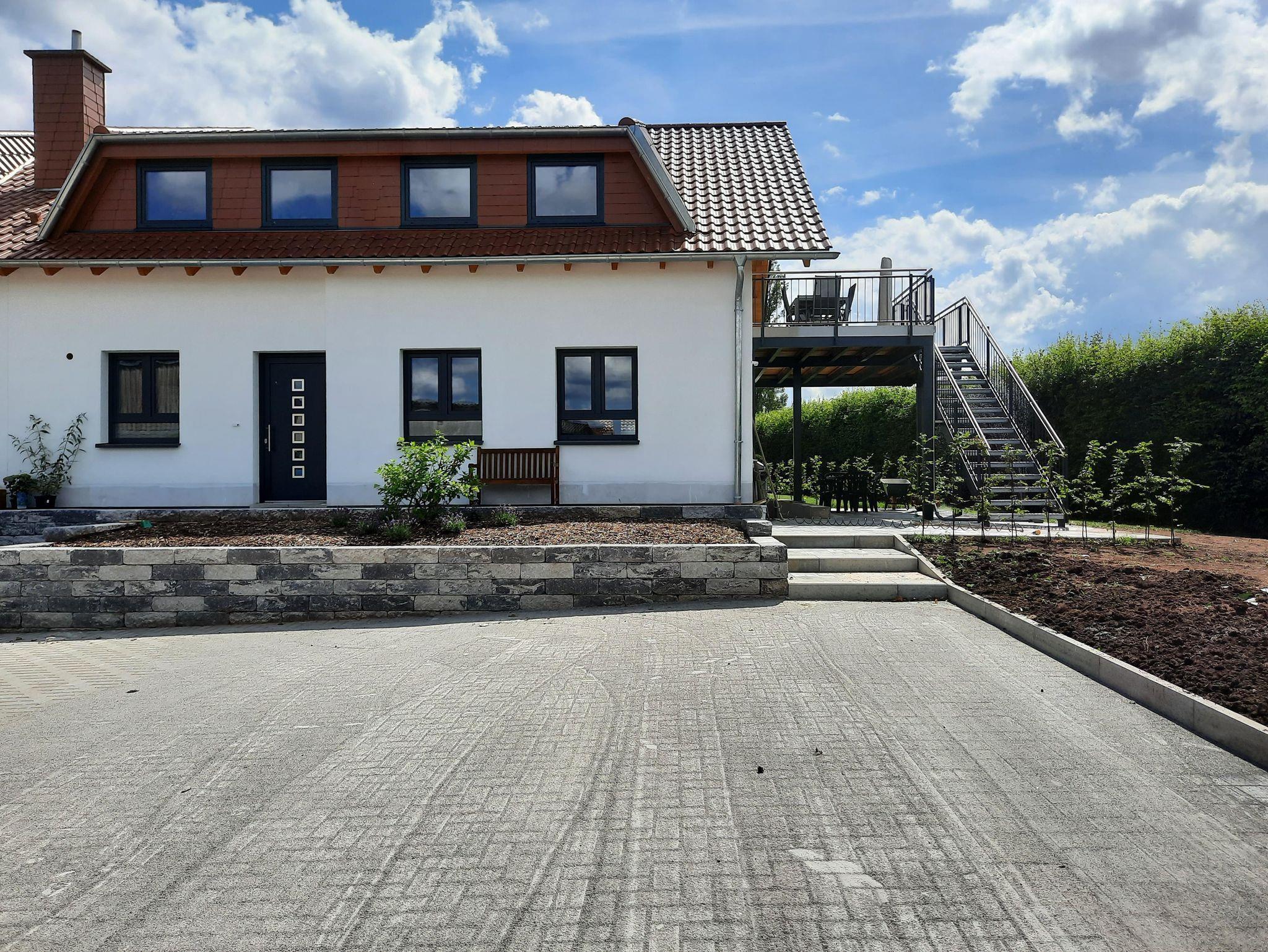 Unsere familienfreundliche Obergeschosswohnung mit 88 m² wurde liebevoll und modern eingerichtet und beinhaltet eine vollwertig ausgestattete, offene Küche mit großem Essbereich. Im gemütlichen Wohnbereich befindet sich eine moderne Wohnlandschaft auf der alle Familienmitglieder Platz finden. Die beiden gleichwertigen Schlafzimmer sind ausgestattet mit je einem Doppelbett. Ein Kleinkinderbettchen steht auf Wunsch bereit. Das Badezimmer, mit Tageslicht, ist freundlich und geräumig mit einer ebenerdigen Dusche. In der gesamten Wohnung nutzen Sie W-LAN und Fußbodenheizung, elektrische Rollläden in Schlaf- und Wohnräumen. Im Kellergeschoss befindet sich ein Hauswirtschaftsraum für beide Wohnungen. Der Zugang zur wohnungseigenen, möbilierten Sonnenterrasse mit Liegewiese ist von Wohn- und beiden Schlafräumen gegeben.