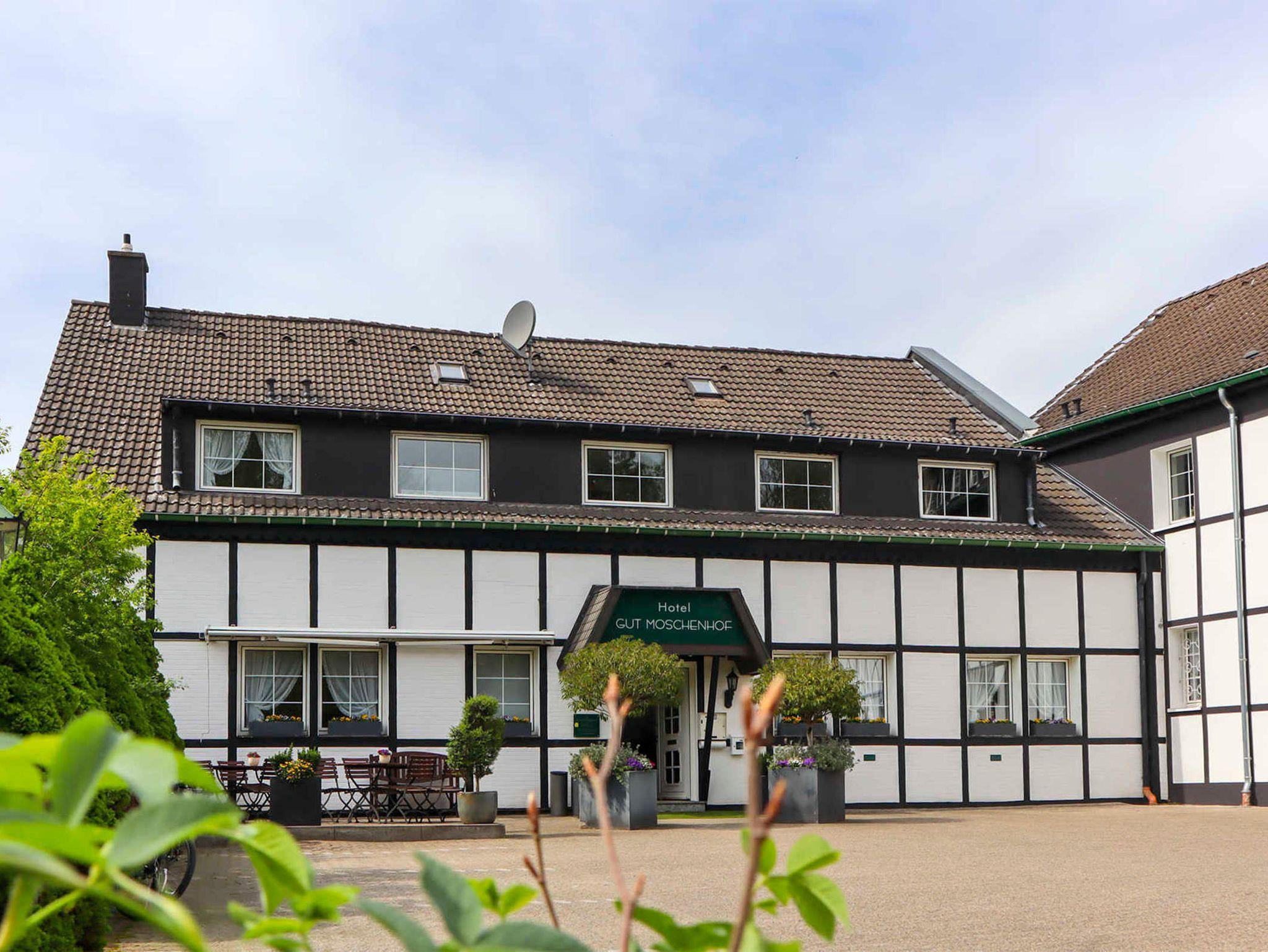 Das Hotel Gut Moschenhof liegt im idyllischen Landschaftsschutzgebiet, unmittelbar zwischen dem Rotthäuser Bachtal und dem Grafenberger Wald. Wer eine Auszeit sucht, die Natur genießen, den Aufenthalt mit reiten, golfen, joggen, wandern, biken verbinden möchte, ist bei uns genau richtig. Unser Hotel befindet sich auf einer im schwarz-weißen Fachwerkstil erbauten Hofanlage aus dem Jahr 1896 - traditionell, klassisch und mit modernen Elementen versehen.