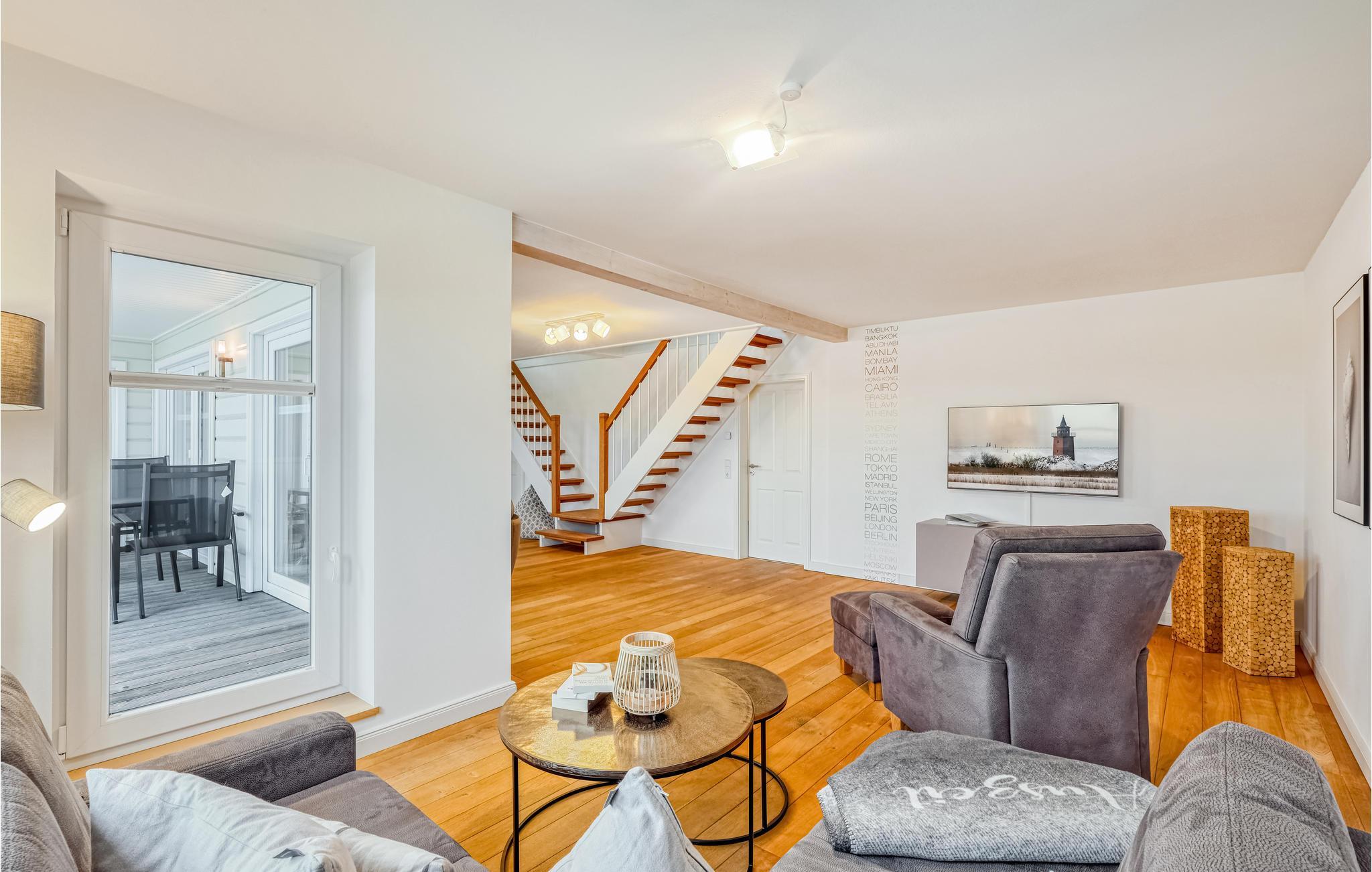 Midt i bykernen og tæt ved Vadehavet venter denne komfortable og lyse lejlighed. Den er ideel til større familier eller ferie med venner, da der her er plads nok til alle: Lejligheden ligger direkte i et lille butikskvarter i Dagebüll og er fordelt over første og anden sal. I stueetagen ligger en café, så kun husets trappe adskiller jer fra en lækker morgenmad eller kaffe og kage. Naturligvis kan I dog også forsyne jer helt selv i husets moderne udstyret køkken.