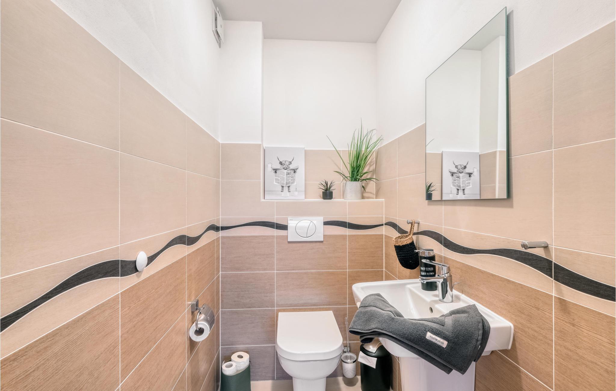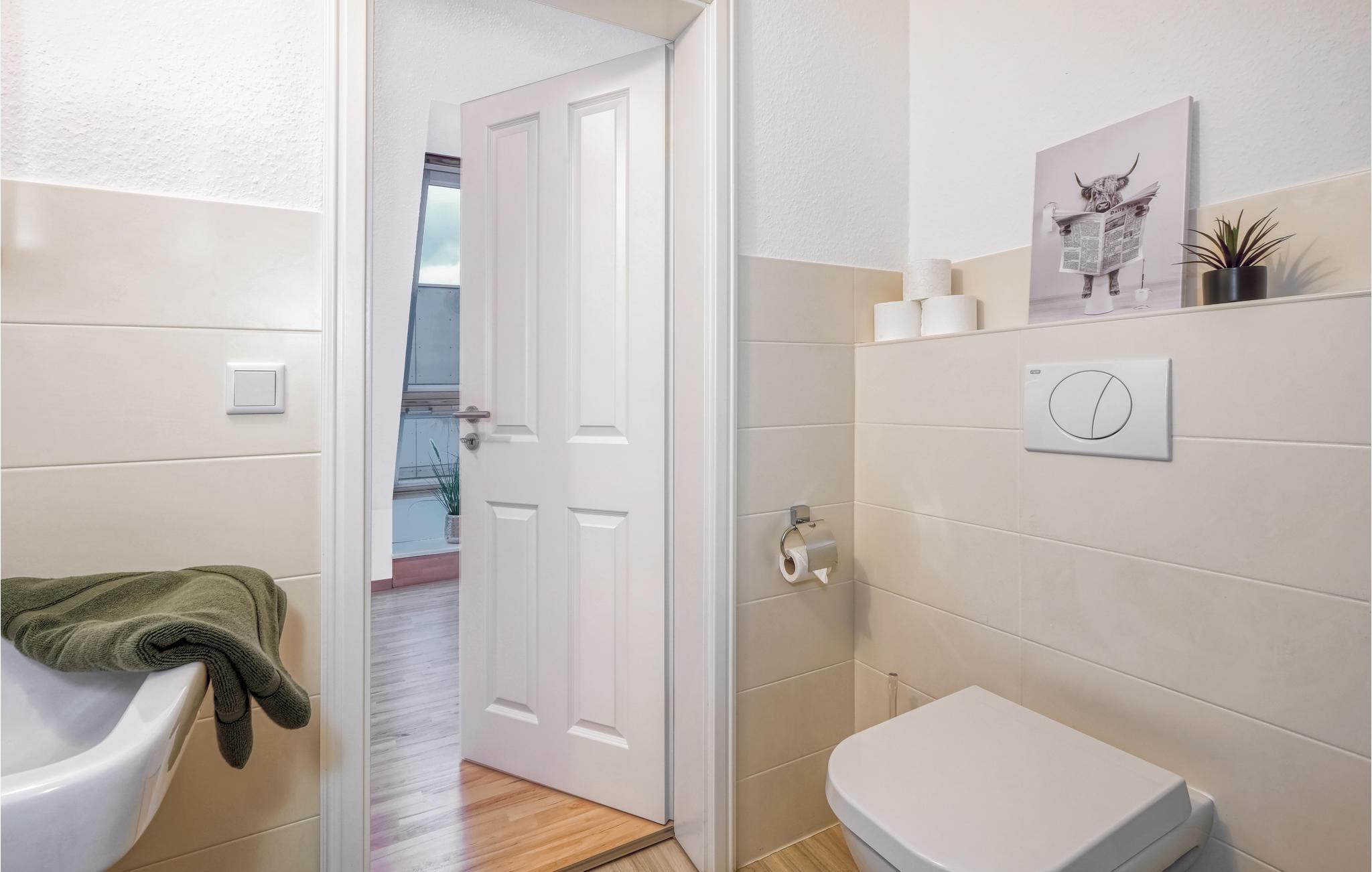 Badeværelse 8m2 (nr. 1) - WC. Varmt og koldt vand. Håndbruser, badekar og bruser