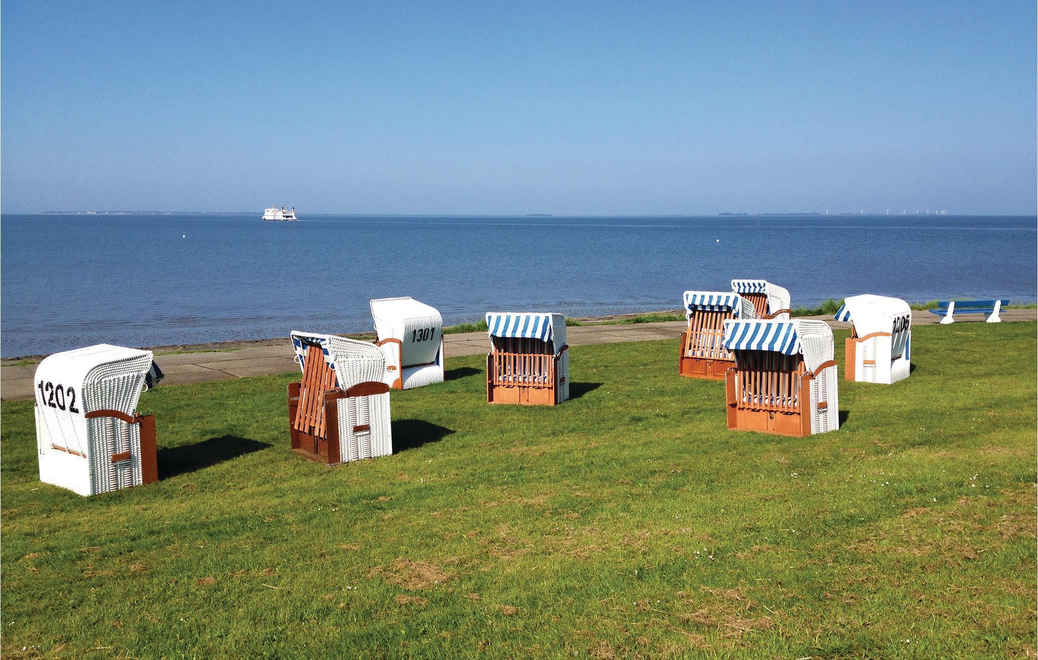 Feriehuset ligger kun få hundrede meter fra Vadehavet og Dagebülls strand, som ligger indbydende klar til en lille svømmetur. På grund af digerne er området velegnet til cykelture - cykler kan lejes i nærheden. I Dagebüll, som feriehusene grænser op til, er der butikker og restauranter samt en købmand, og lige i nærheden lægger færgen til Amrum og Föhr til - perfekt til en dagsudflugt. Havnen i Schüttsiel har forbindelse til "halligerne" Hooge og Langeneß. Tag også en tur til Sild fra nabobyen Nieböll, hvorfra toget går direkte til Westerland.