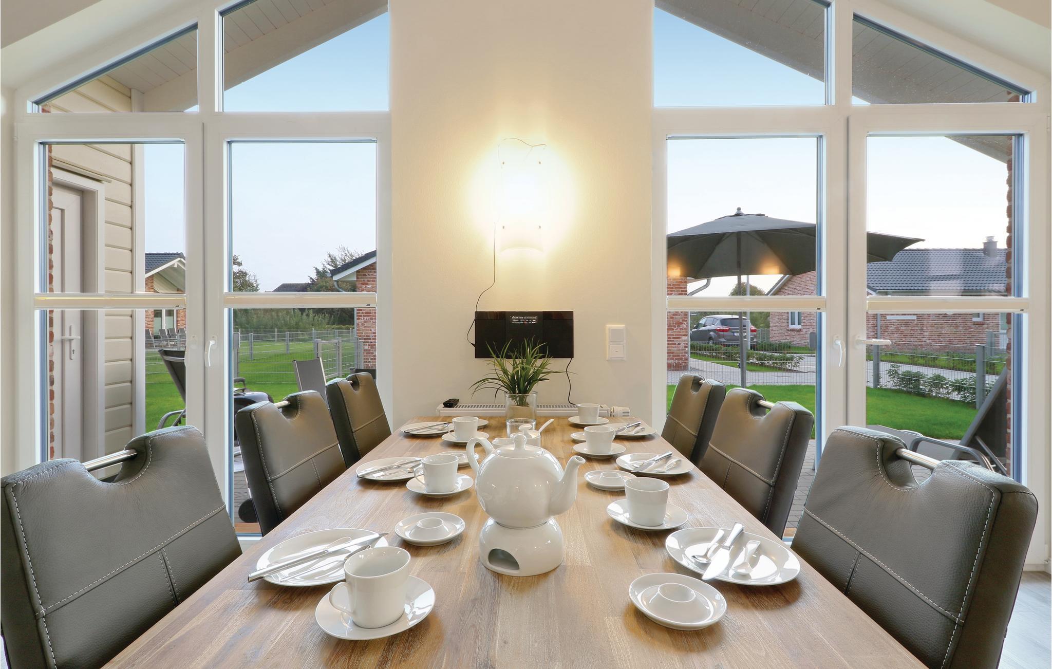 Feriehuset ligger kun få hundrede meter fra Vadehavet og Dagebülls strand, som ligger indbydende klar til en lille svømmetur. På grund af digerne er området velegnet til cykelture - cykler kan lejes i nærheden. I Dagebüll, som feriehusene grænser op til, er der butikker og restauranter samt en købmand, og lige i nærheden lægger færgen til Amrum og Föhr til - perfekt til en dagsudflugt. Havnen i Schüttsiel har forbindelse til "halligerne" Hooge og Langeneß. Tag også en tur til Sild fra nabobyen Nieböll, hvorfra toget går direkte til Westerland.