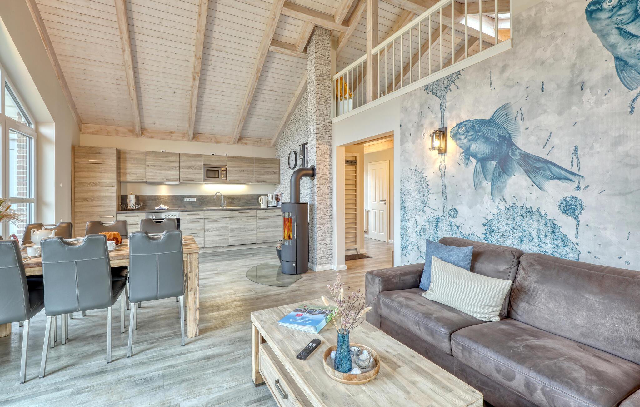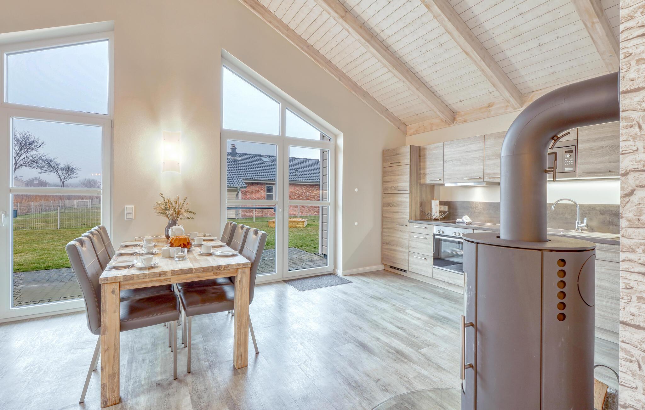 Her kan I slappe af på terrassen og nyde den salte brise fra havet. Huset er indrettet med kvalitetsmøbler, og alle værelser er rummelige og praktiske. Takket være saunaen og den hyggelige brændeovn er huset også velegnet til de kolde måneder af året. Efter en lang spadseretur langs diget kan I hygge jer indendøre og få varmen med det samme.