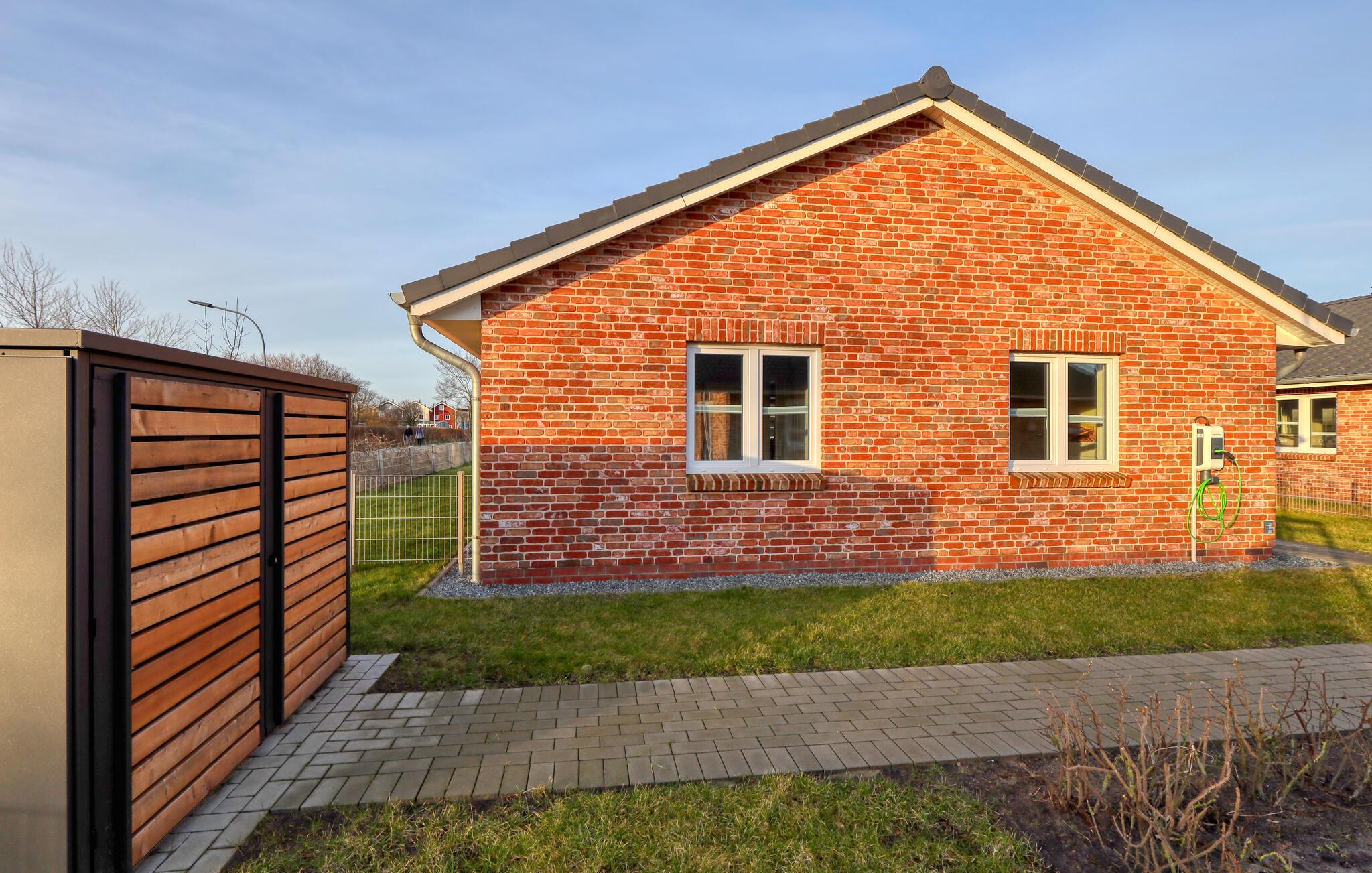 På terrassen ved alle huse i Dagebüll er der en stikdåse, der kan benyttes til at oplade el-cykler.