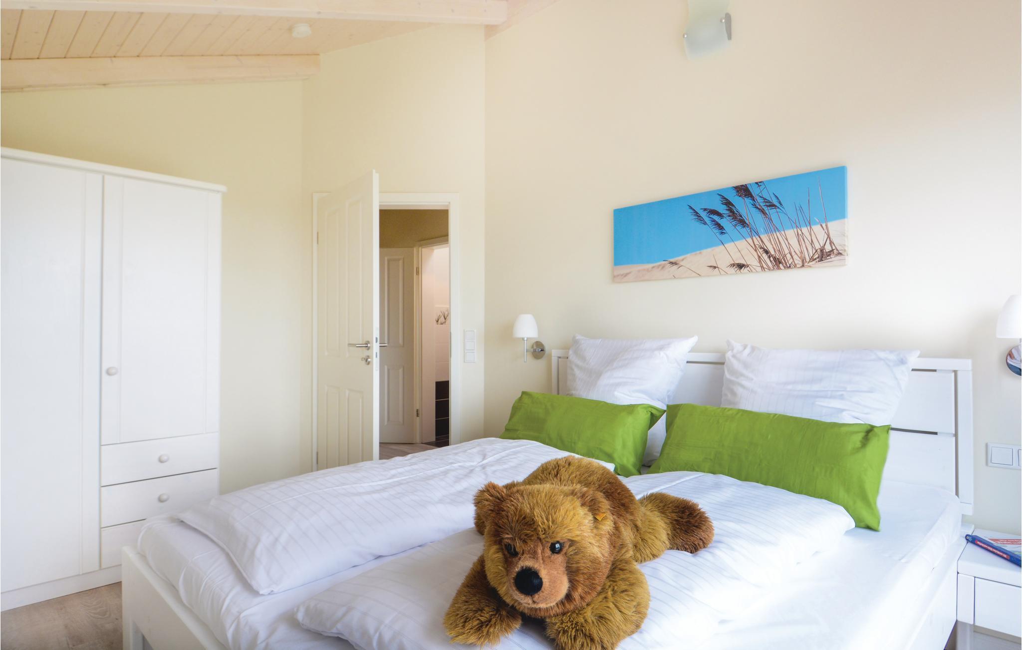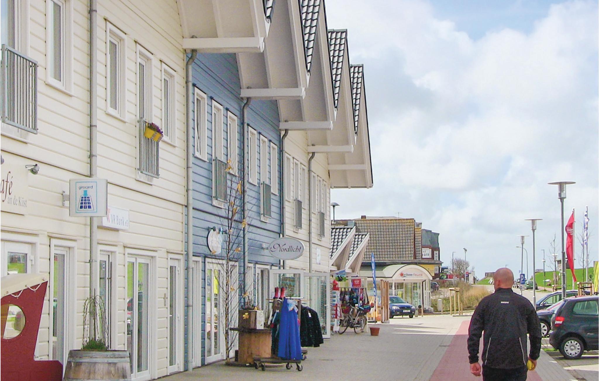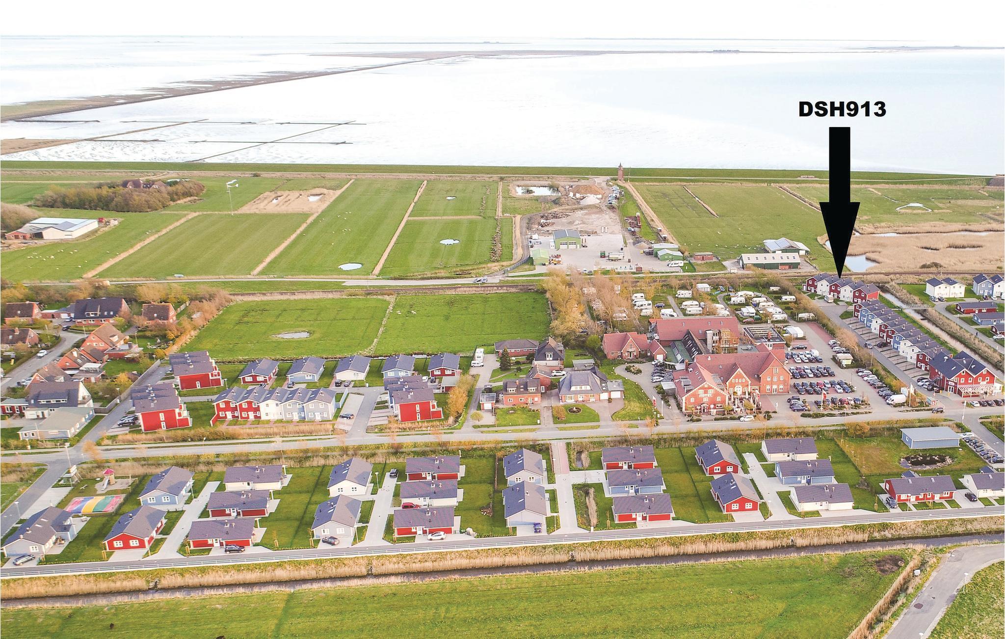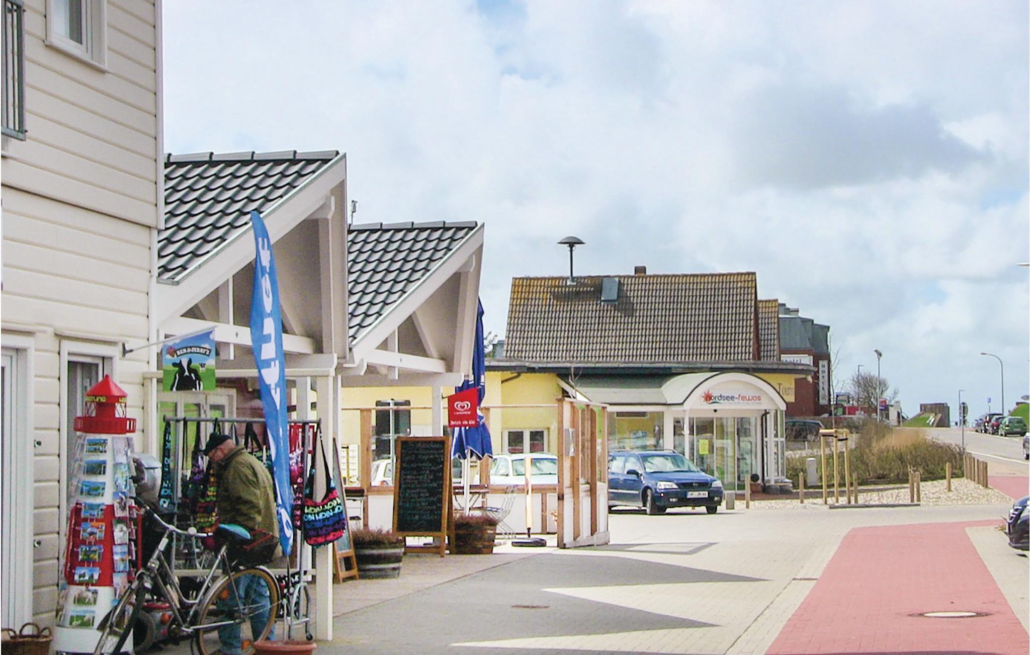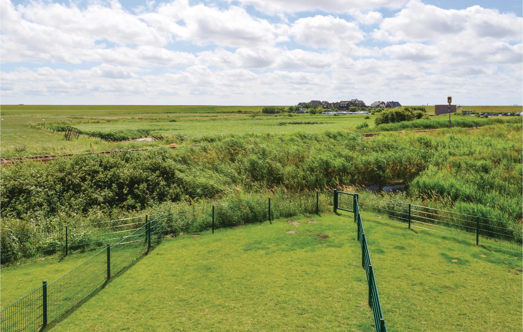 Feriehuset ligger kun 200 m fra Vadehavet og fra Dagebülls stedsegrønne naturstrand, pyntet med de karakteristiske strandkurvestole. De mange diger i området er perfekte til ture på cykel. Hvis I ikke har cykler med, kan de lejes i feriehusbyen.