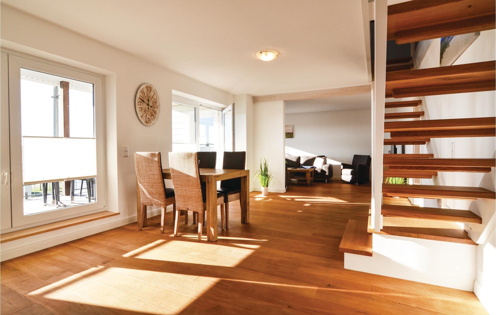 Den er ideel til større familier eller ferie med venner, da der her er plads nok til alle: Lejligheden ligger direkte i et lille butikskvarter i Dagebüll og er fordelt over første og anden sal. I stueetagen ligger en café, så kun husets trappe adskiller jer fra en lækker morgenmad eller kaffe og kage. Naturligvis kan I dog også forsyne jer helt selv i husets moderne udstyret køkken.