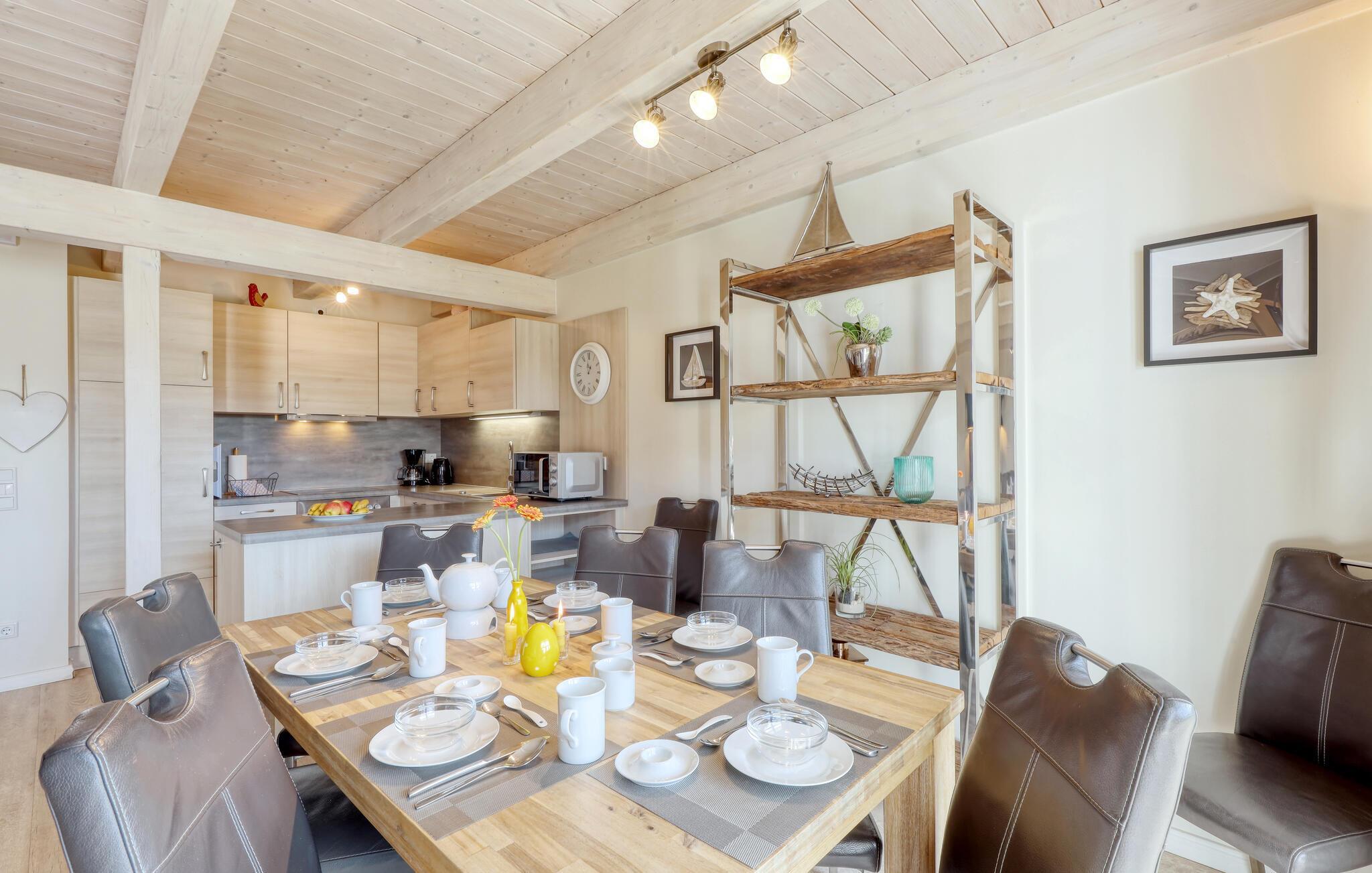 Feriehuset ligger kun 200 m fra Vadehavet og Dagebülls stedsegrønne naturstrand, pyntet med de karakteristiske strandkurvestole. De mange diger i området er perfekte til ture på cykel. Hvis I ikke har cykler med, kan de lejes i feriehusbyen. I centrum af Dagebüll, som er nærmeste nabo til feriehusbyen, finder I små lokale butikker, restauranter og en købmand. Her ligger også havnen, hvorfra færgerne sejler til Amrum og Föhr, perfekt til en dagsudflugt.