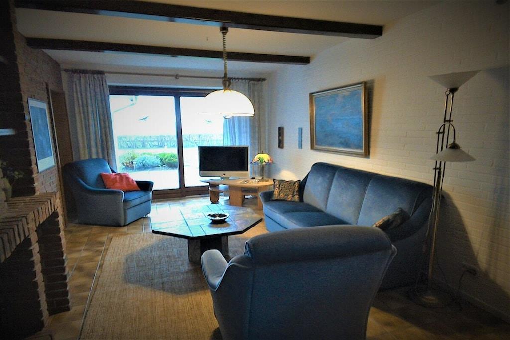 Haus Halligblick mit der Ferienwohnung Hooge liegt etwa 300 Meter vom Meer entfernt. Über einen kleinen Weg gelangt man in wenigen Minuten an die Badestelle. Sie ist hell, freundlich, ganz individuell und liebevoll eingerichtet und eine Nichtraucher-Ferienwohnung. Zum Haus gehört ein großer eingezäunter Garten. Die Ferienwohnung ist ebenerdig und hat mit 105 m² Wohnfläche für bis zu sechs Personen Platz. Sie verfügt über ein Schlafzimmer mit separater Dusche/ WC, ein Wohn-/Schlafzimmer (35 qm), eine Wohn-/Essküche, ein großes Kaminzimmer mit einer großen Schiebetür durch die man auf die Terrasse gelangt und ein Badezimmer mit Wanne. Weitere Ferienwohnungen im Haus Halligblick: www.dagebuell-halligblick.de. Unter dieser Webseite können Sie sich auch über die kuscheligen Gaubenwohnungen Gröde und Hamburger Hallig (kleiner und entsprechend kostengünstiger) informieren.