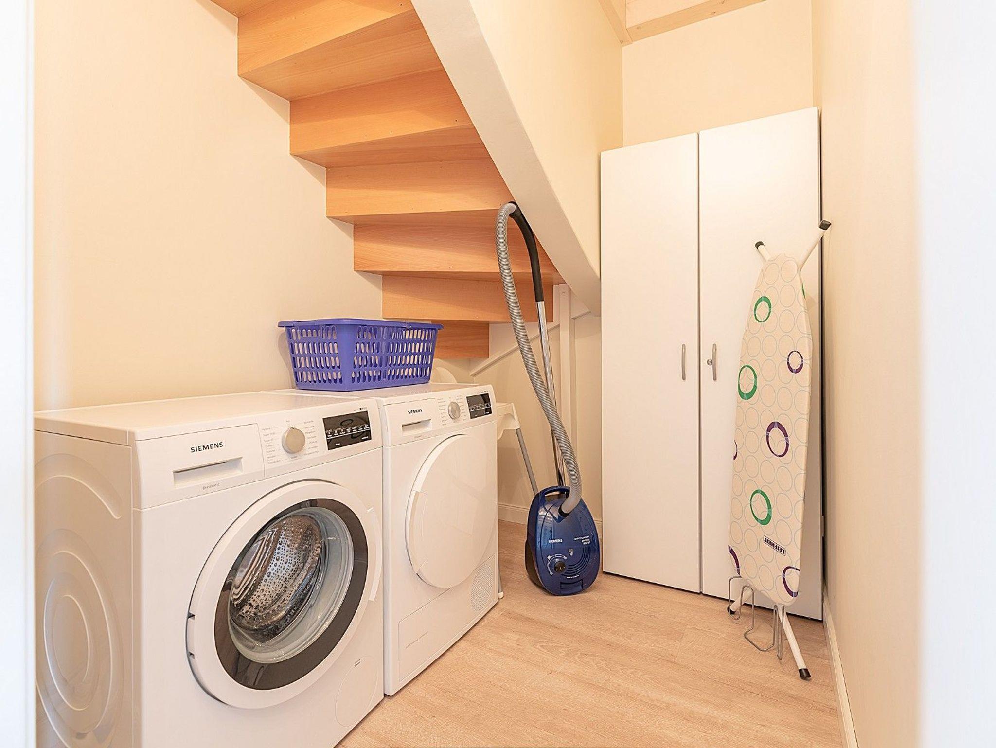 Eine abschaltbare Außensteckdose steht zum Laden von E-Bikes bereit. WLAN, Waschmaschine, Trockner und hochwertige Gartenmöbel ergänzen die komfortable Ausstattung.