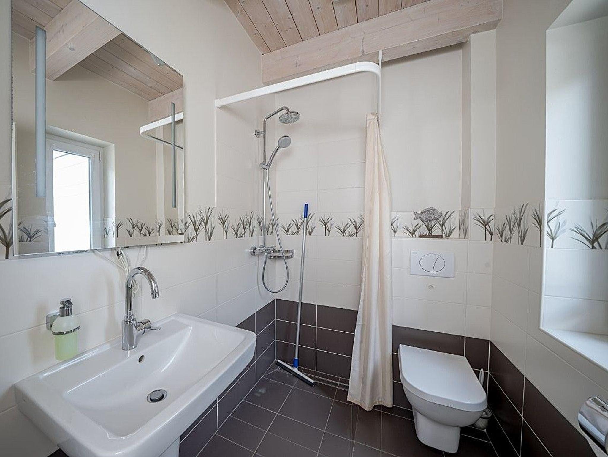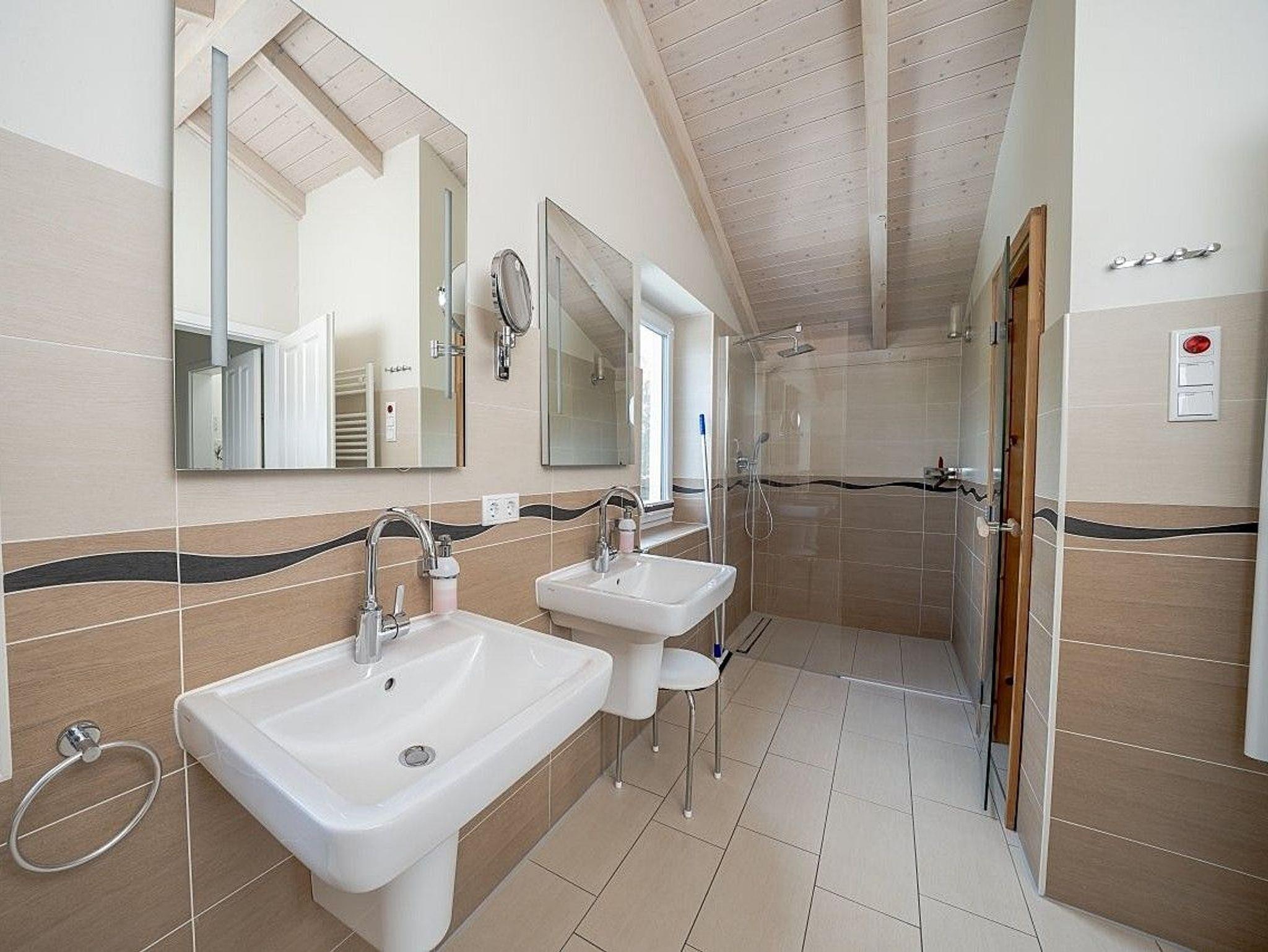 Im Obergeschoss sorgt ein großzügiger Wellnessbereich mit Sauna und einer XXL-Badewanne für zwei Personen für entspannte Stunden. Zwei weitere Schlafzimmer und ein zusätzliches Bad bieten zusätzlichen Komfort.