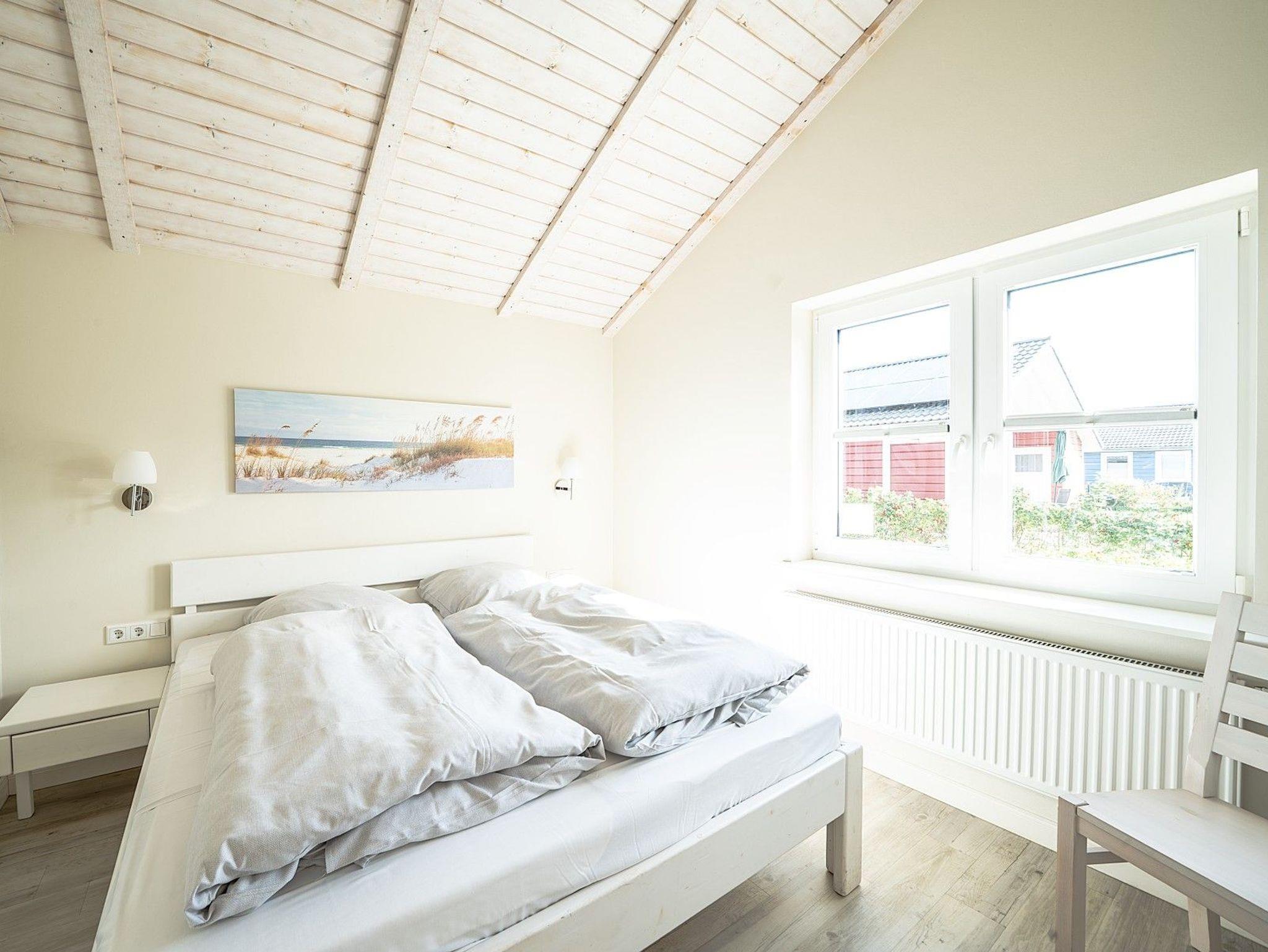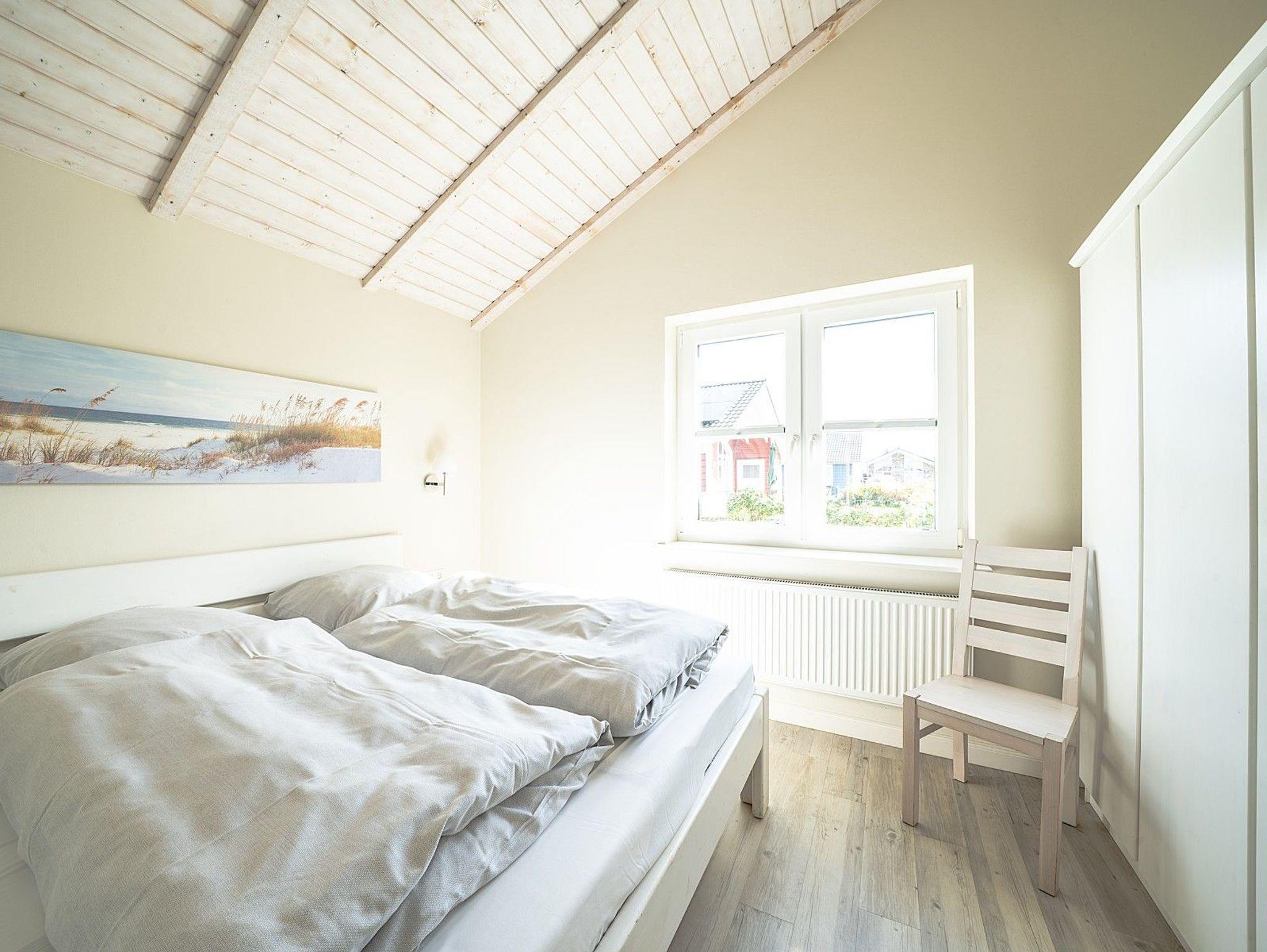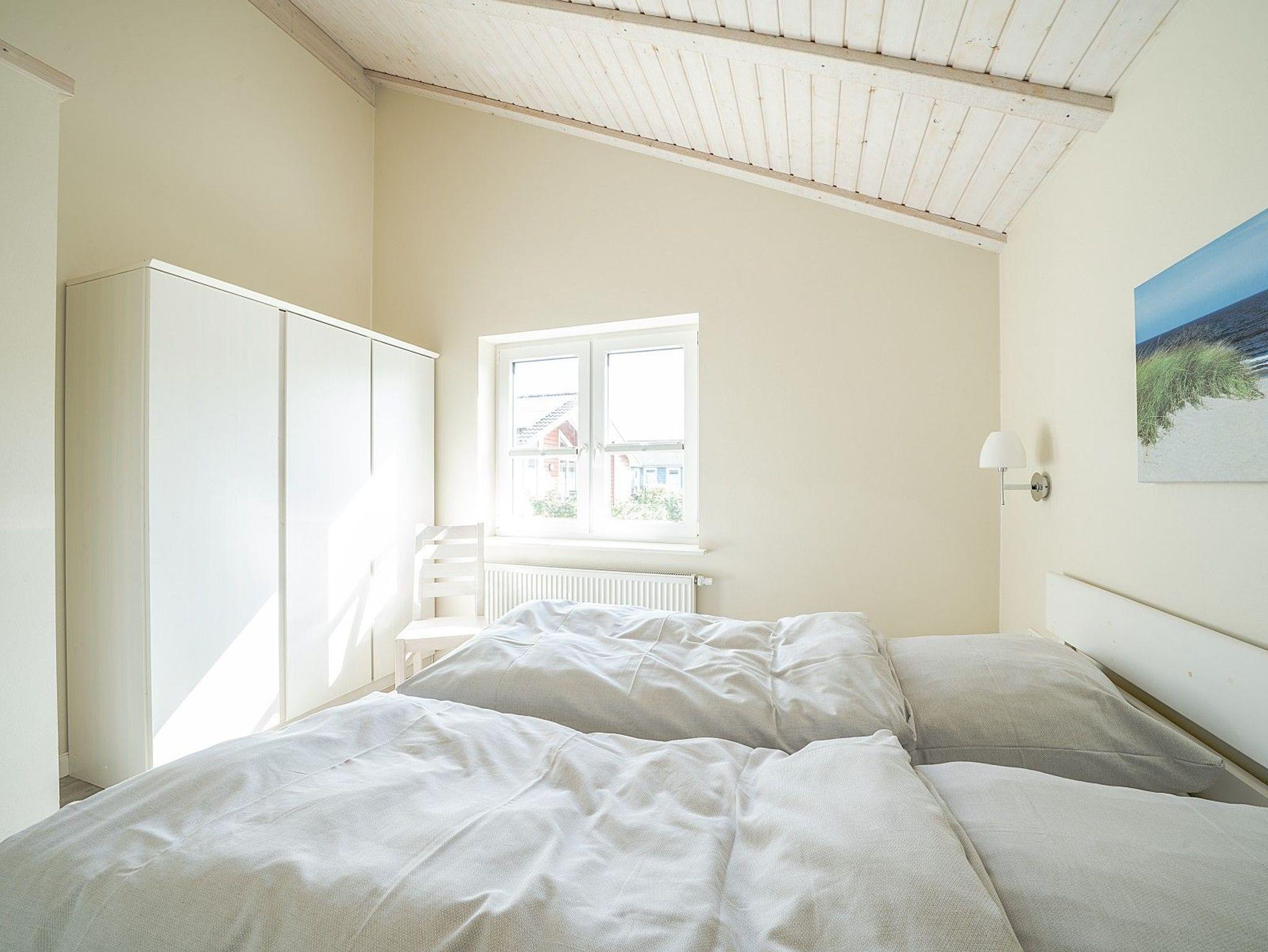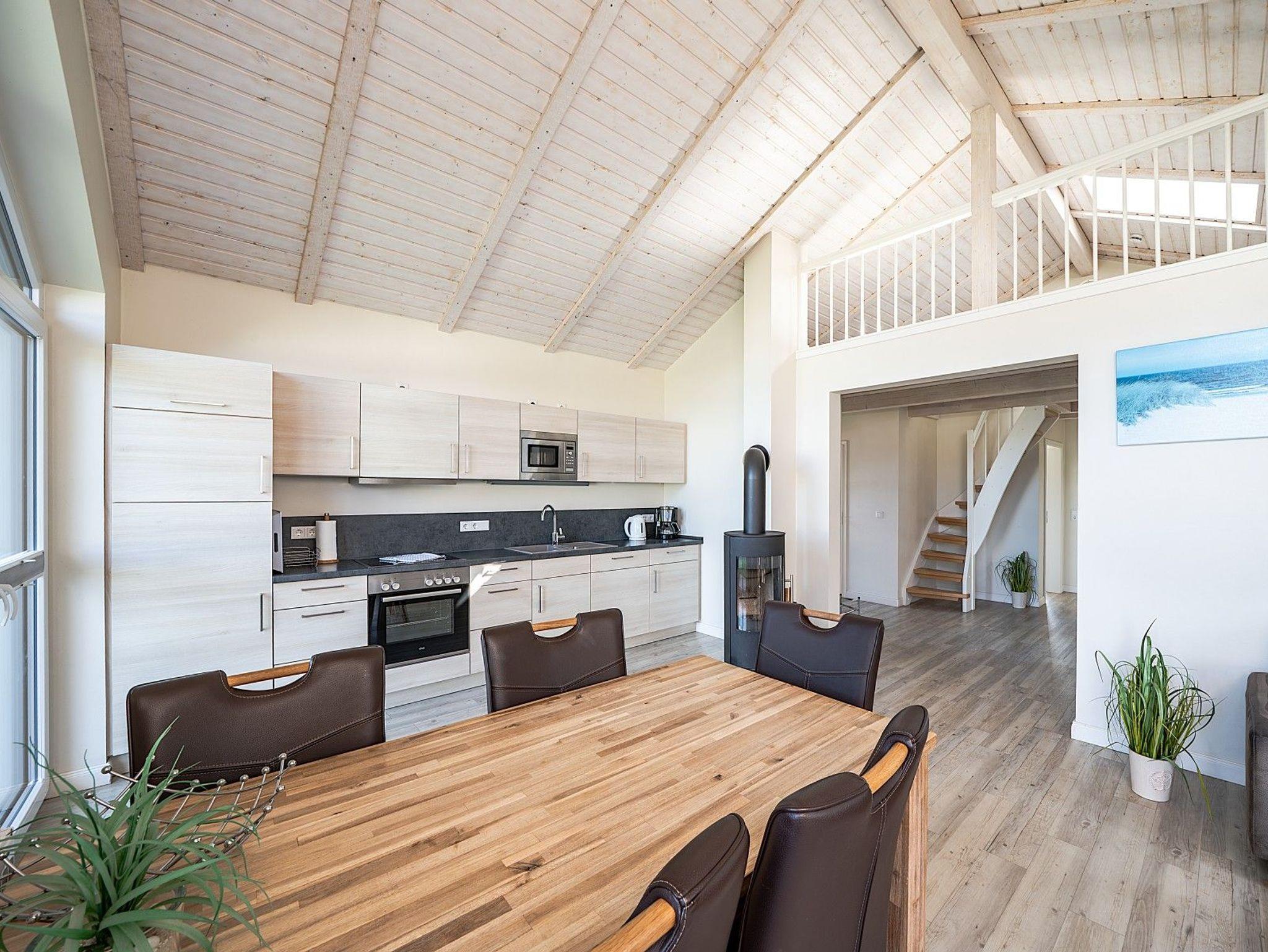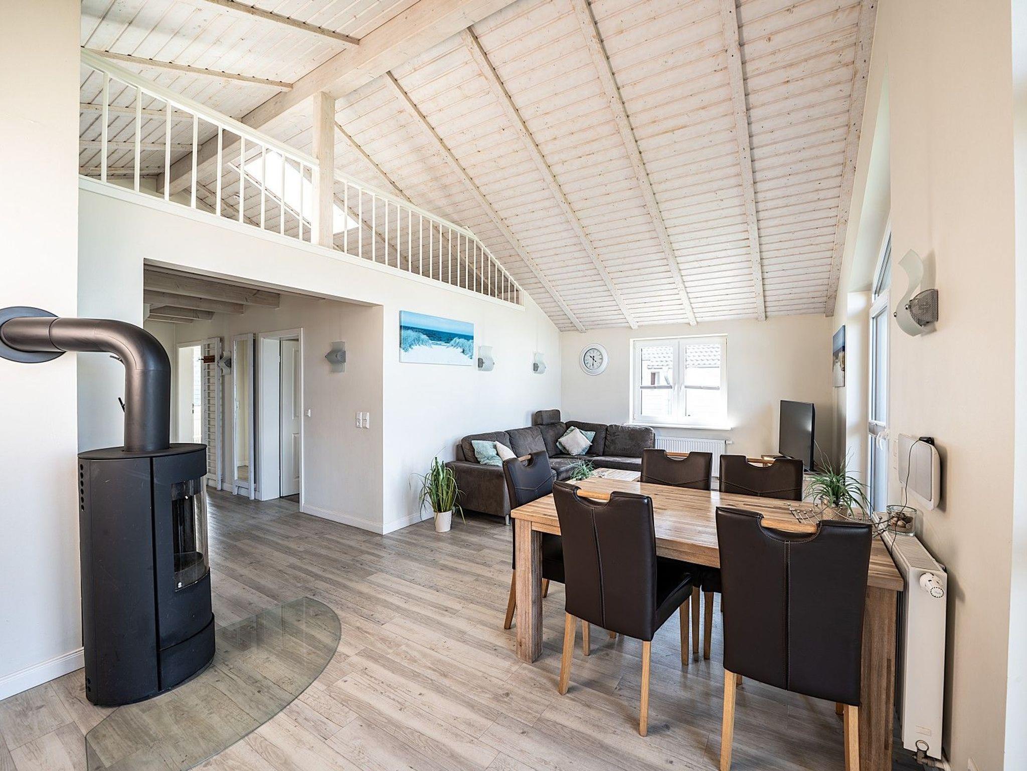 Zwei liebevoll eingerichtete Schlafzimmer mit Doppelbetten, ein modernes Bad mit Dusche und Badewanne sowie ein heller Wohnbereich mit Kaminofen schaffen eine warme, einladende Atmosphäre. Die voll ausgestattete Küche lässt keine Wünsche offen, und in der privaten Sauna genießen Sie Entspannung nach einem Tag am Meer.