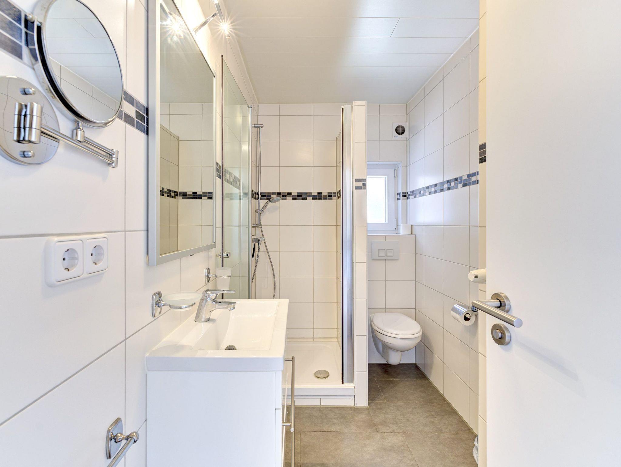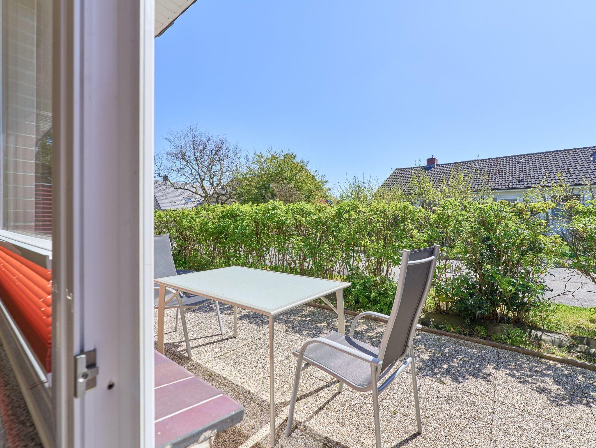 Im Badezimmer befinden sich eine Dusche, ein WC und ein Fön. Auf der Terrasse (ca. 20 m²) stehen Gartenmöbel zur Verfügung.