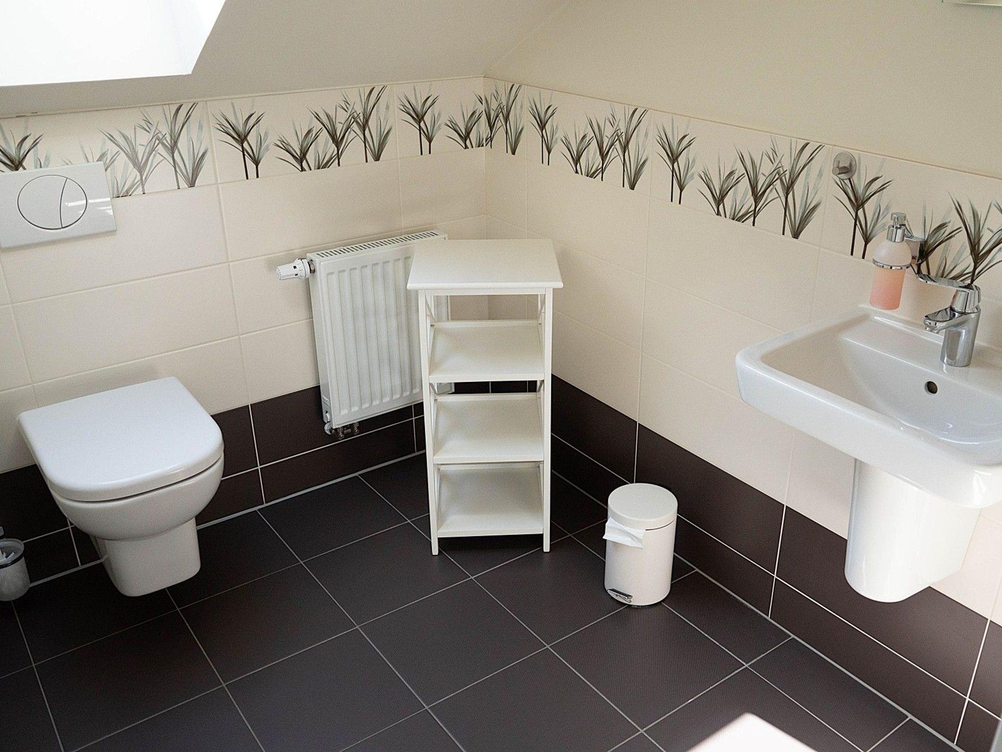 Im Obergeschoss lädt ein großzügiges Wellnessbad mit Sauna und Badewanne zum Entspannen ein. Ein Balkon bietet zusätzlichen Raum, um die frische Nordseeluft zu genießen. Insgesamt stehen vier Schlafzimmer zur Verfügung, die auf beide Etagen verteilt sind und ausreichend Platz für gemeinsame oder ruhige Stunden bieten.