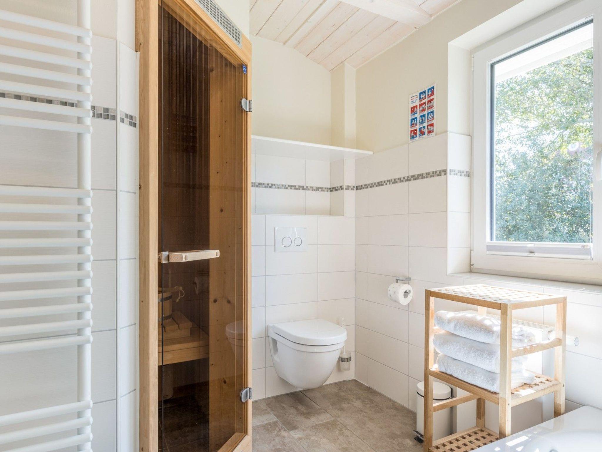 Innen überzeugt das Haus mit einer stilvollen Einrichtung, großzügigen Räumen und einer offenen, voll ausgestatteten Küche. Zwei Schlafzimmer mit Doppelbetten und ein modernes Bad mit Dusche und Badewanne bieten hohen Komfort. Nach einem Tag am Meer sorgen Sauna und Kaminofen für wohlige Wärme und Entspannung.