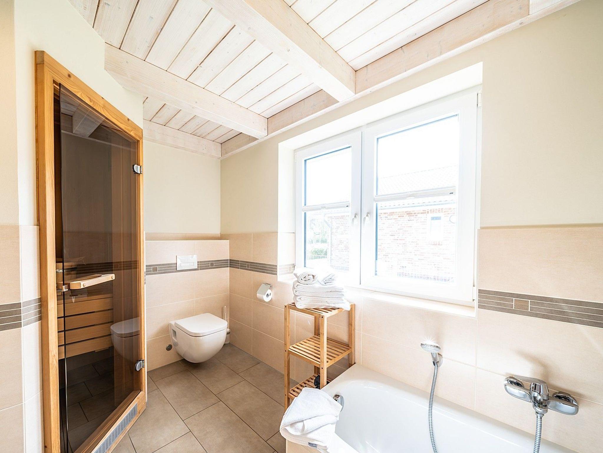 Ein besonderes Highlight ist die private Sauna, die nach langen Spaziergängen am Deich für wohltuende Entspannung sorgt. Auf der Terrasse laden Strandkorb (saisonal), Grill und Gartenmöbel zu erholsamen Stunden im Freien ein. Das eingezäunte Grundstück bietet Privatsphäre, während eine abschaltbare Außensteckdose das Laden von E-Bikes ermöglicht. Für noch mehr Komfort steht am Parkplatz zusätzlich eine Lademöglichkeit für E-Autos bereit.