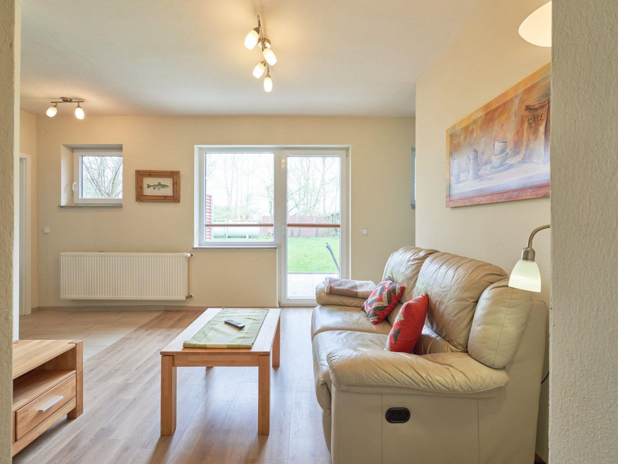 Die 2-Zimmer-Ferienwohnung verfügt über ein Wohnzimmer mit einem Ledersofa mit Relaxfunktion, außerdem gibt es einen 32 SAT-TV sowie einen WLAN-Internetanschluss.