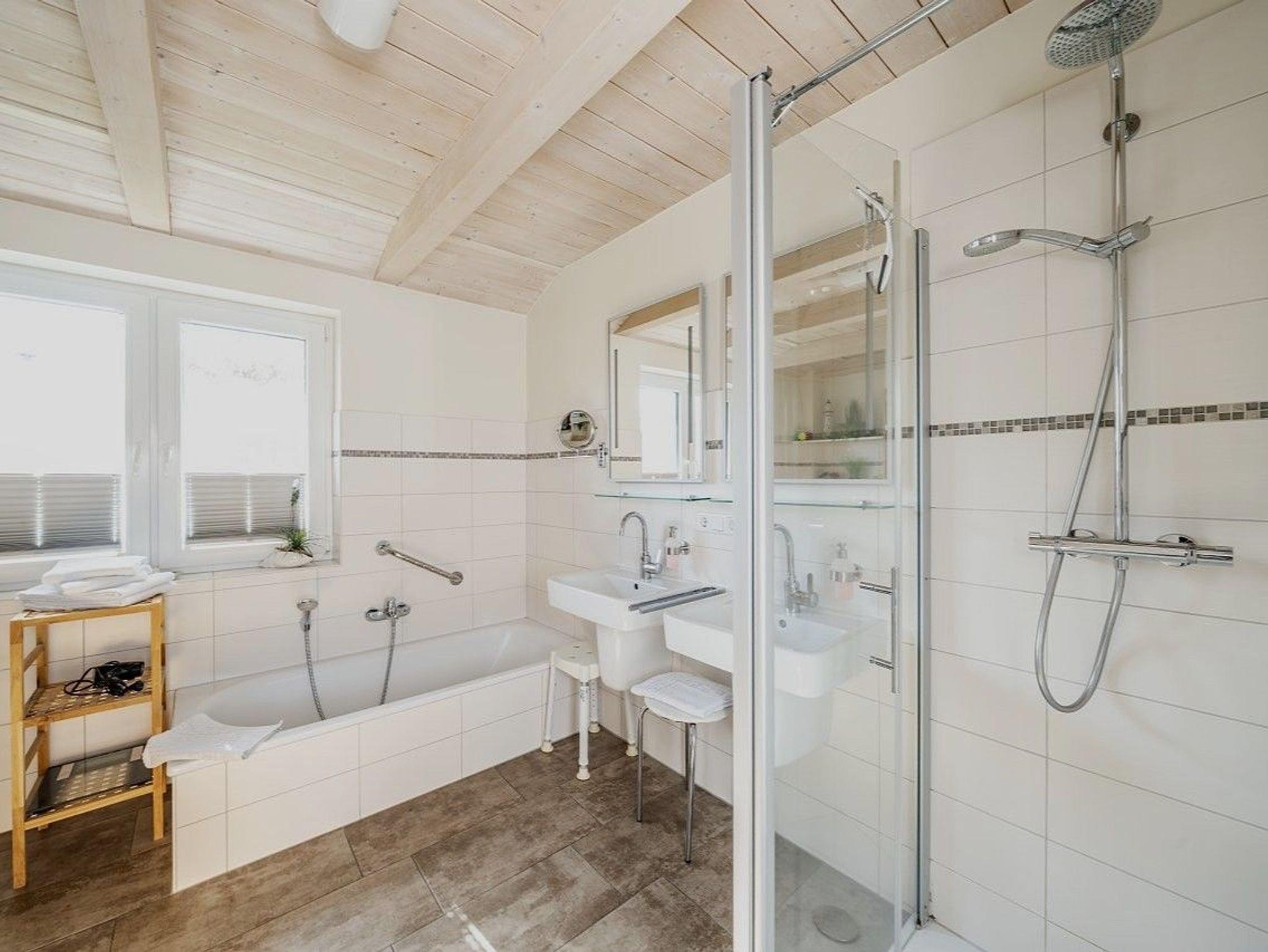Im eingezäunten Garten genießen Sie entspannte Stunden im Strandkorb oder auf der Terrasse mit Grill und Sitzgruppe. Eine Wallbox und abschaltbare E-Auto-Steckdose stehen bereit. WLAN, Waschmaschine, Trockner und Fliegengitter an allen Fenstern runden das Angebot ab.
