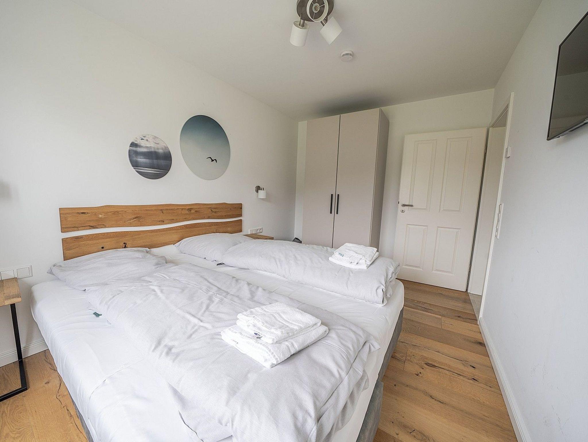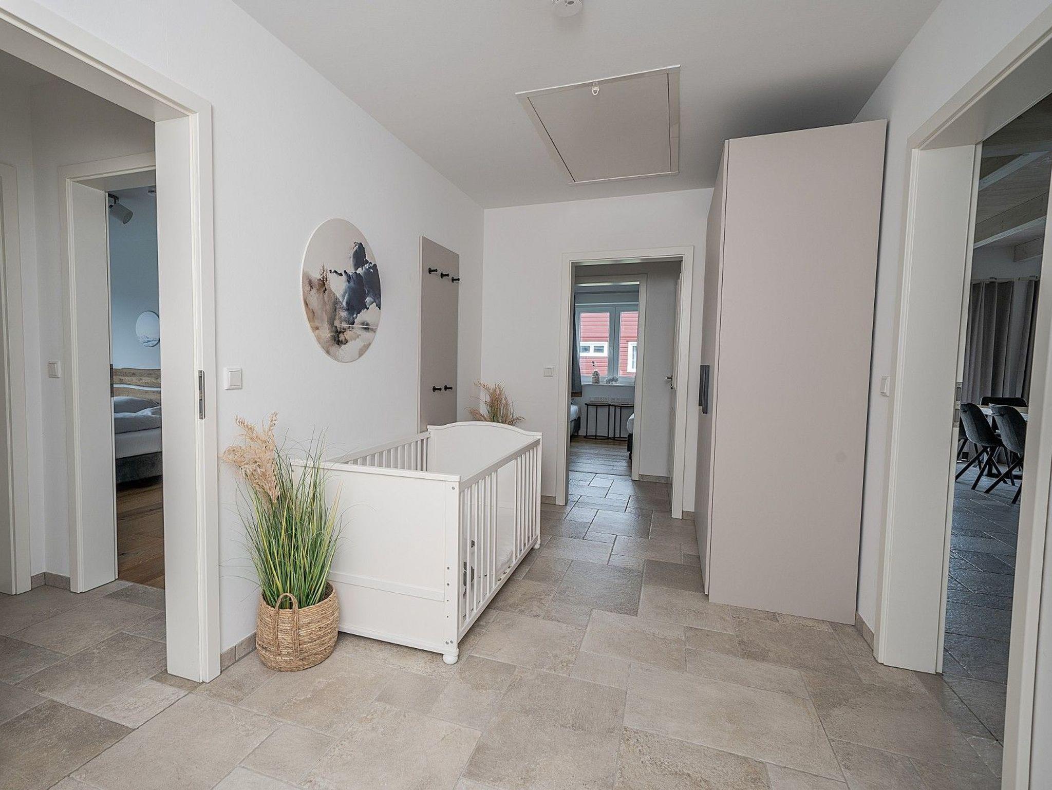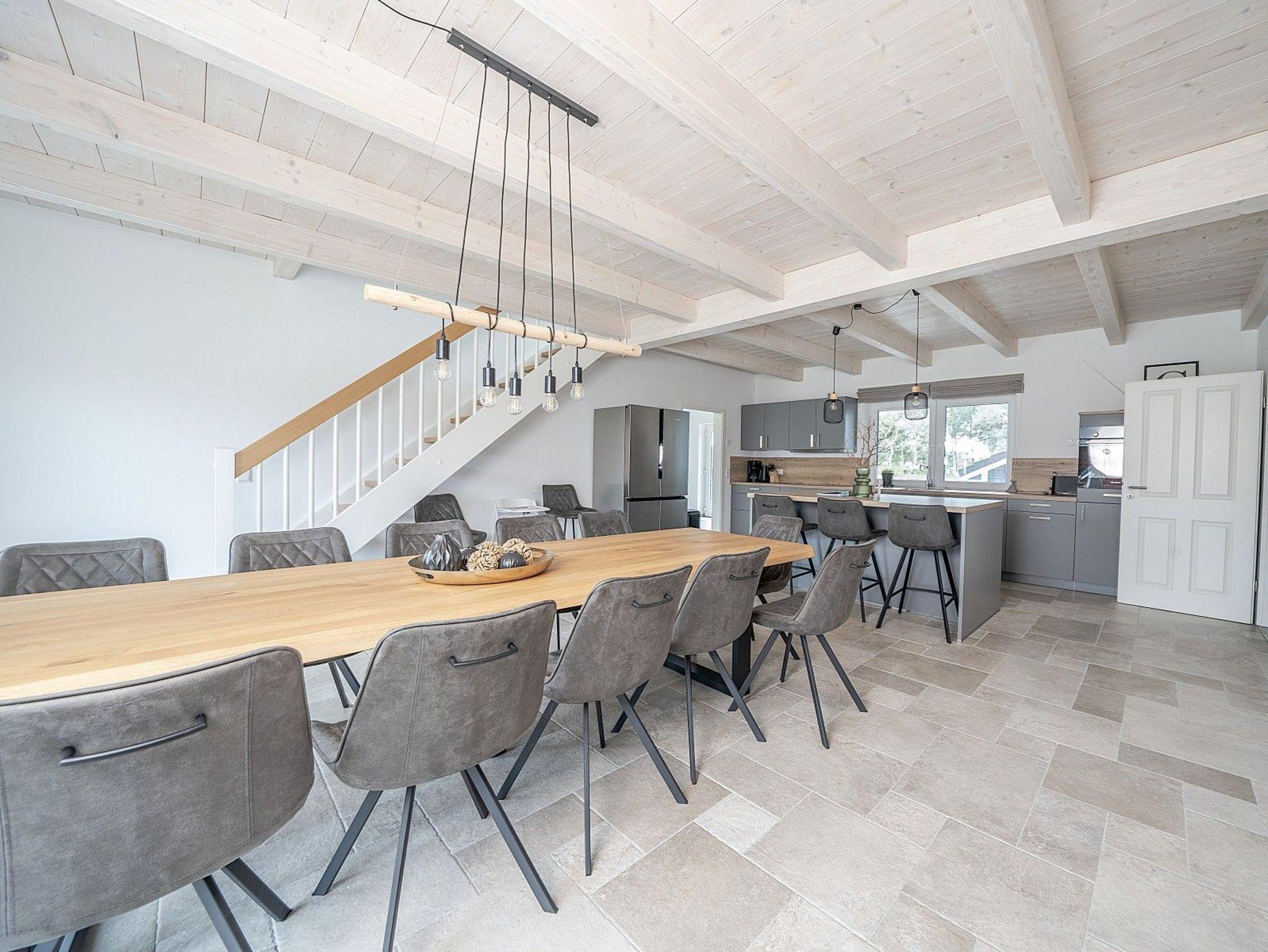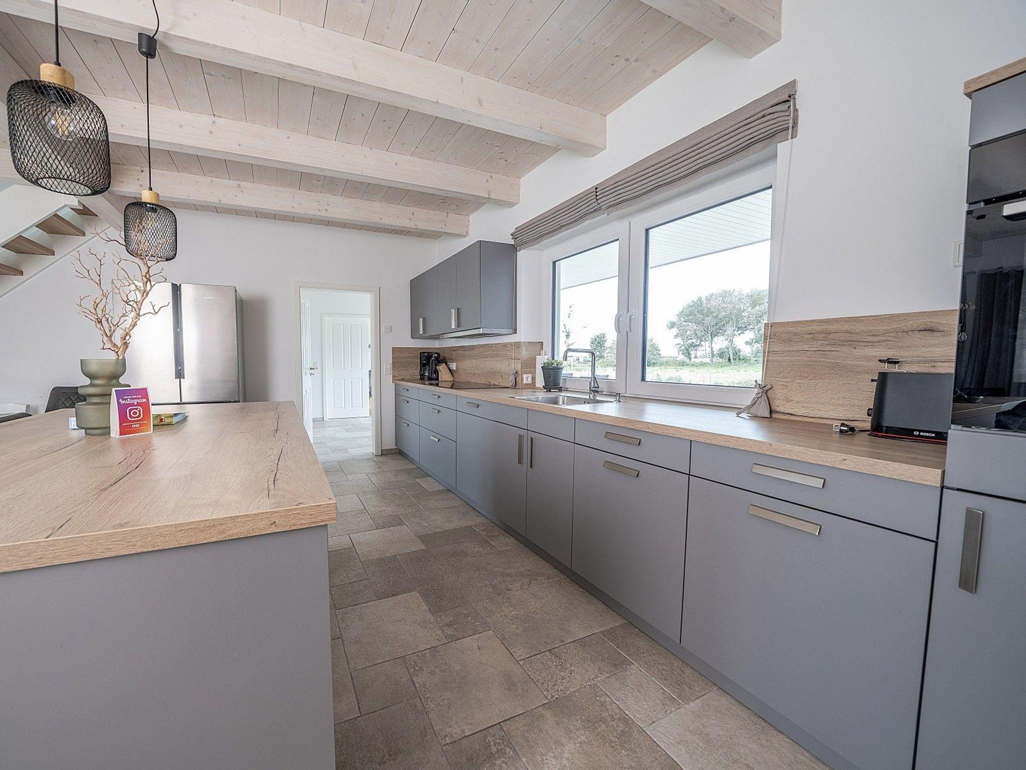 Der helle Wohnbereich mit großen Fensterfronten schafft eine einladende Atmosphäre und bietet Raum für gemeinsame Stunden beim Kochen, Essen und Entspannen. Sechs Schlafzimmer und vier Bäder sorgen für ausreichend Rückzugsmöglichkeiten, während die hauseigene Sauna nach einem Tag an der frischen Nordseeluft wohltuende Entspannung verspricht.