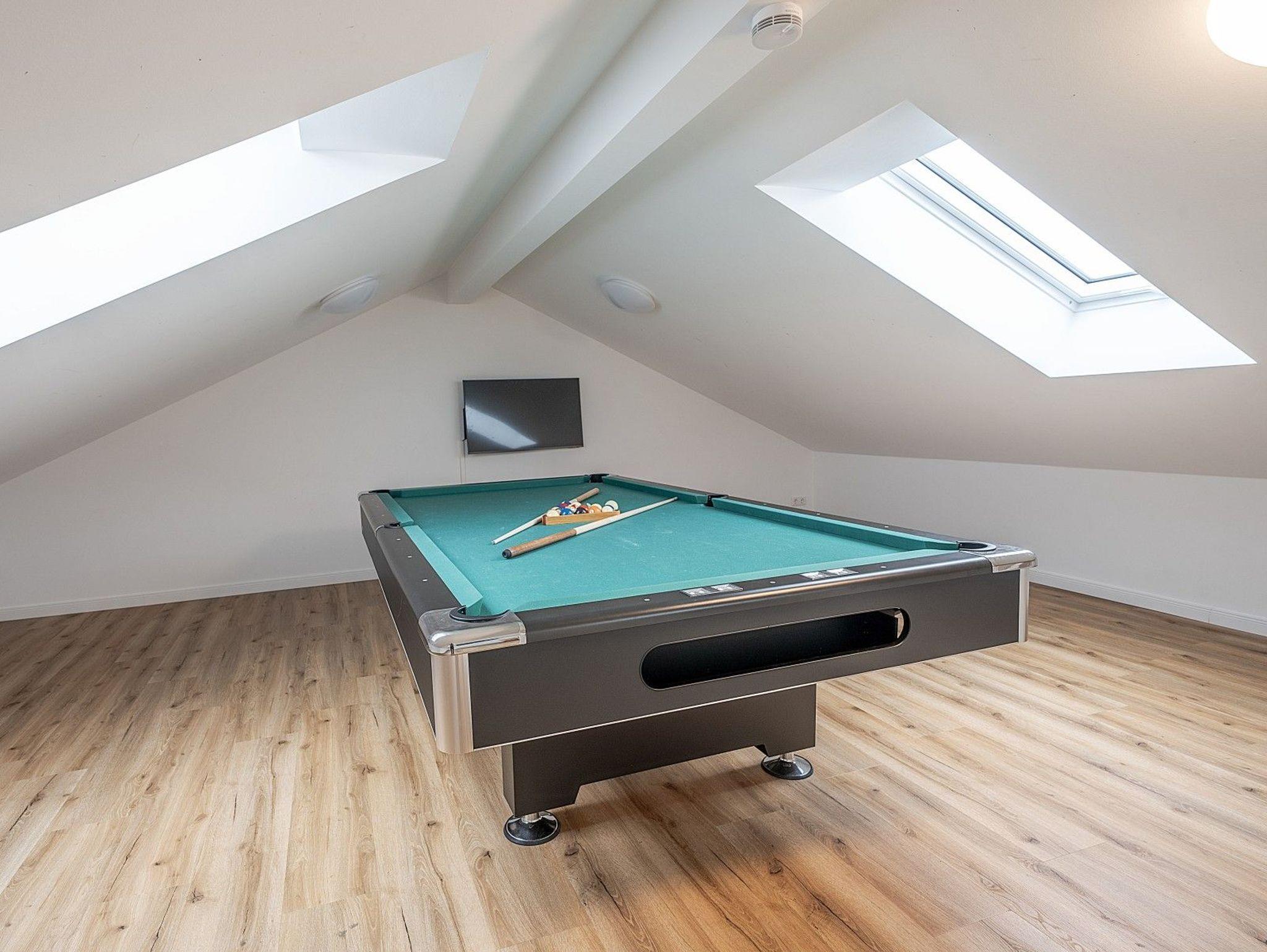 • Galerie mit Tischkicker, Billard, Dart und weiterem TV